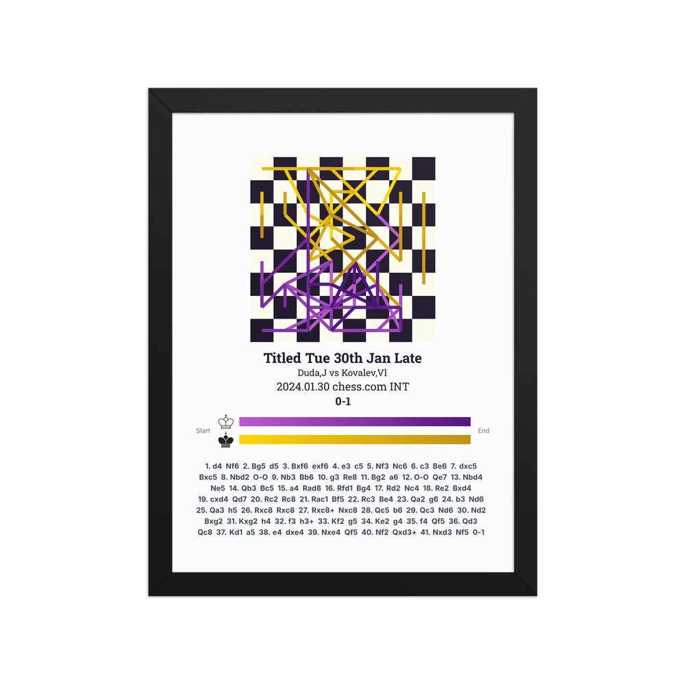 Museum-quality poster on thick, durable matte paper. A sharp, clean look for any chess visualisation.