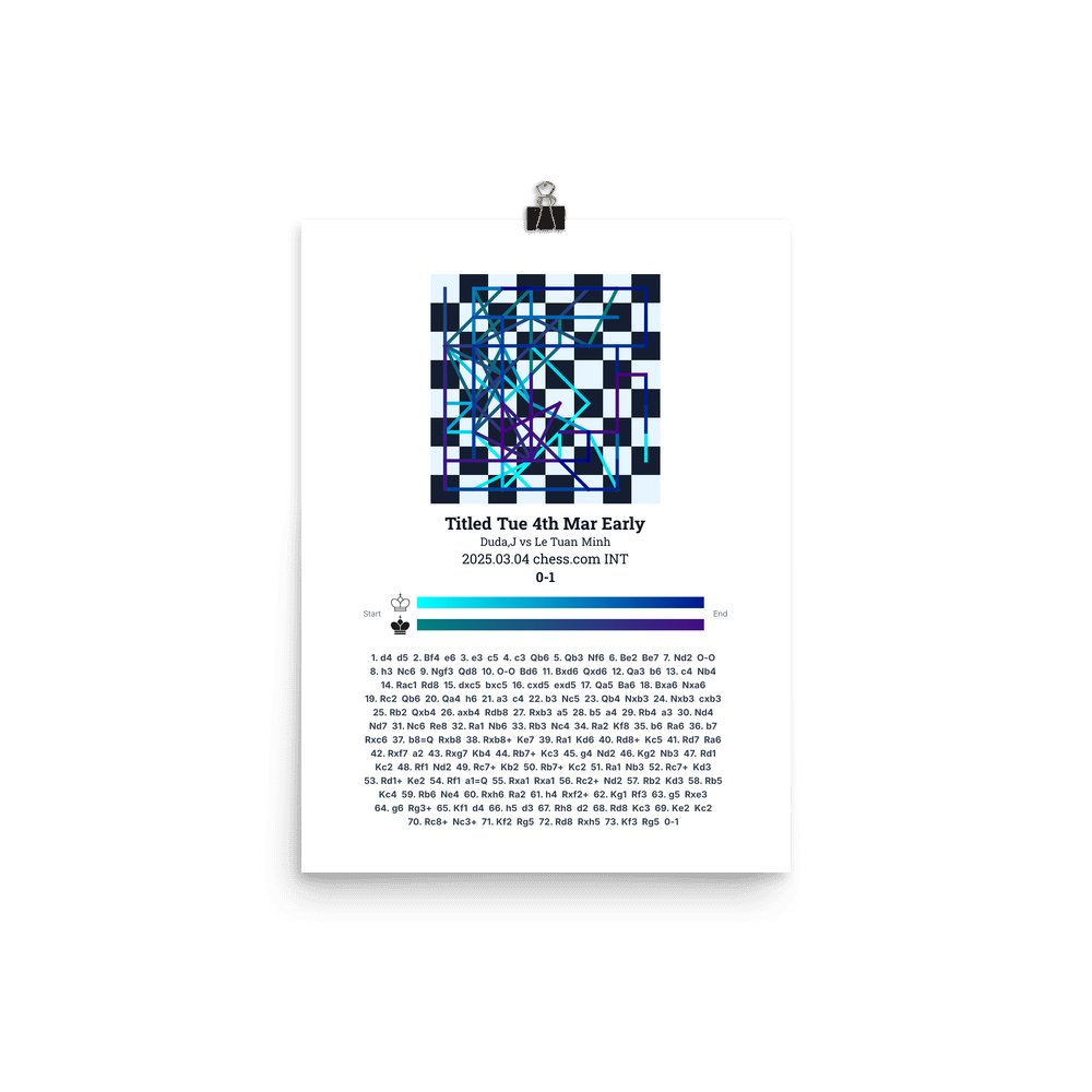 Museum-quality poster on thick, durable matte paper. A sharp, clean look for any chess visualisation.