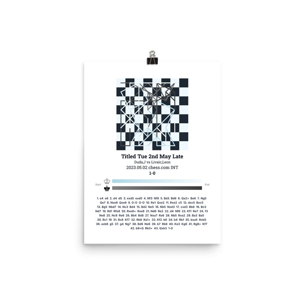 Museum-quality poster on thick, durable matte paper. A sharp, clean look for any chess visualisation.