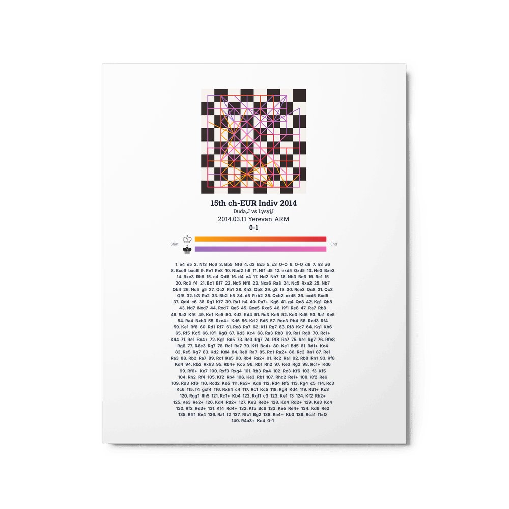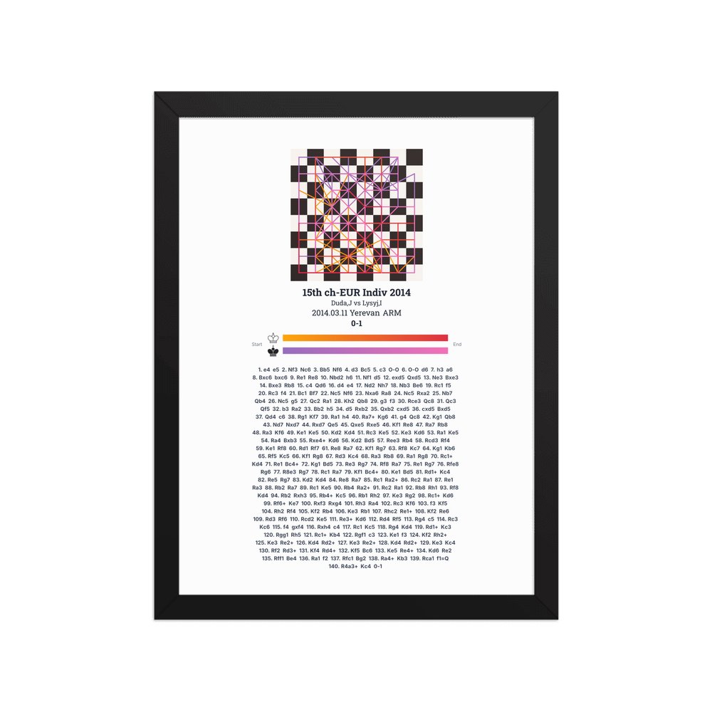 Museum-quality poster on thick, durable matte paper. A sharp, clean look for any chess visualisation.