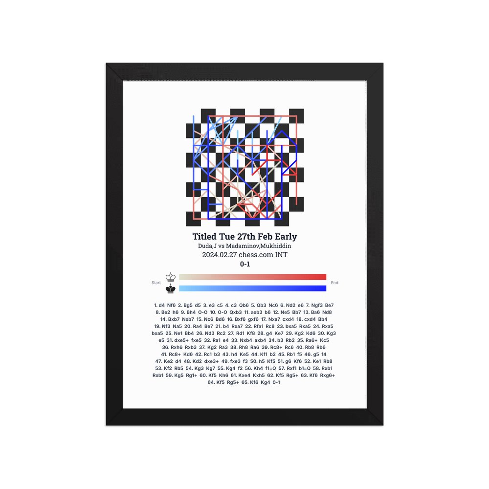 Museum-quality poster on thick, durable matte paper. A sharp, clean look for any chess visualisation.