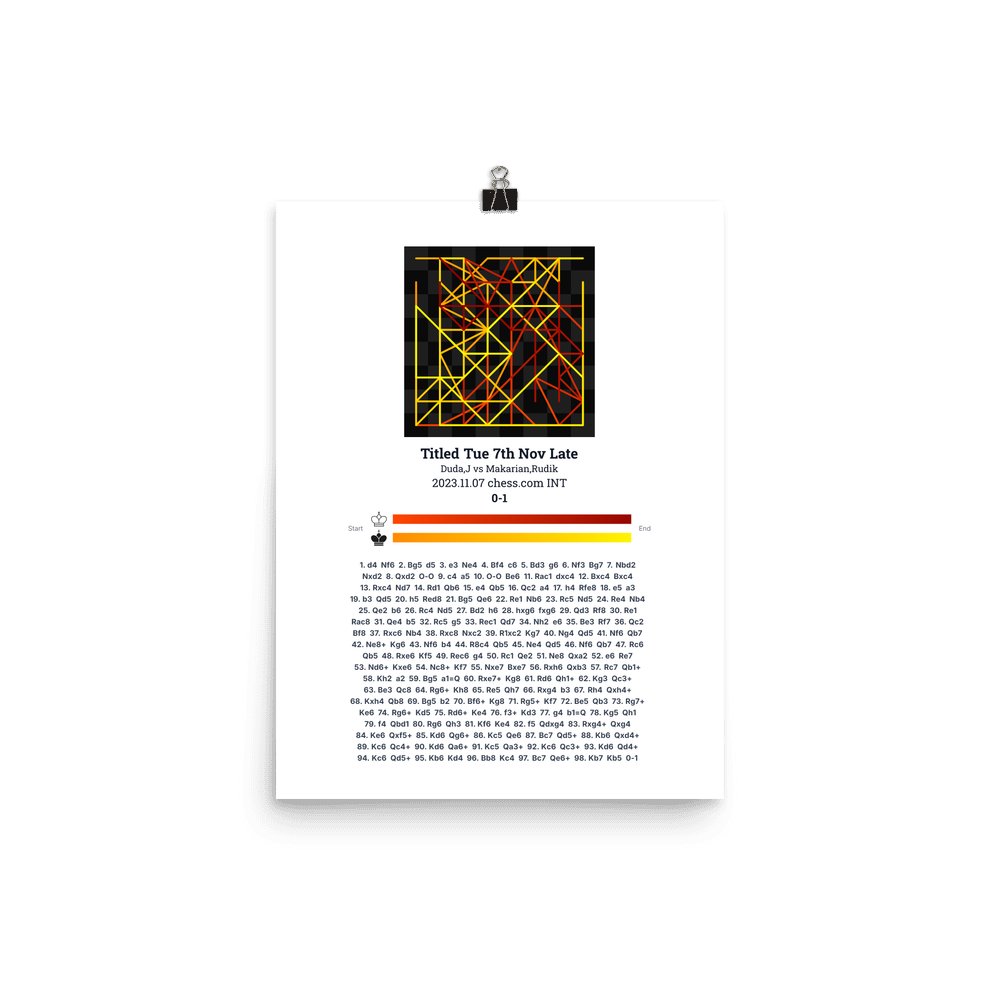 Museum-quality poster on thick, durable matte paper. A sharp, clean look for any chess visualisation.