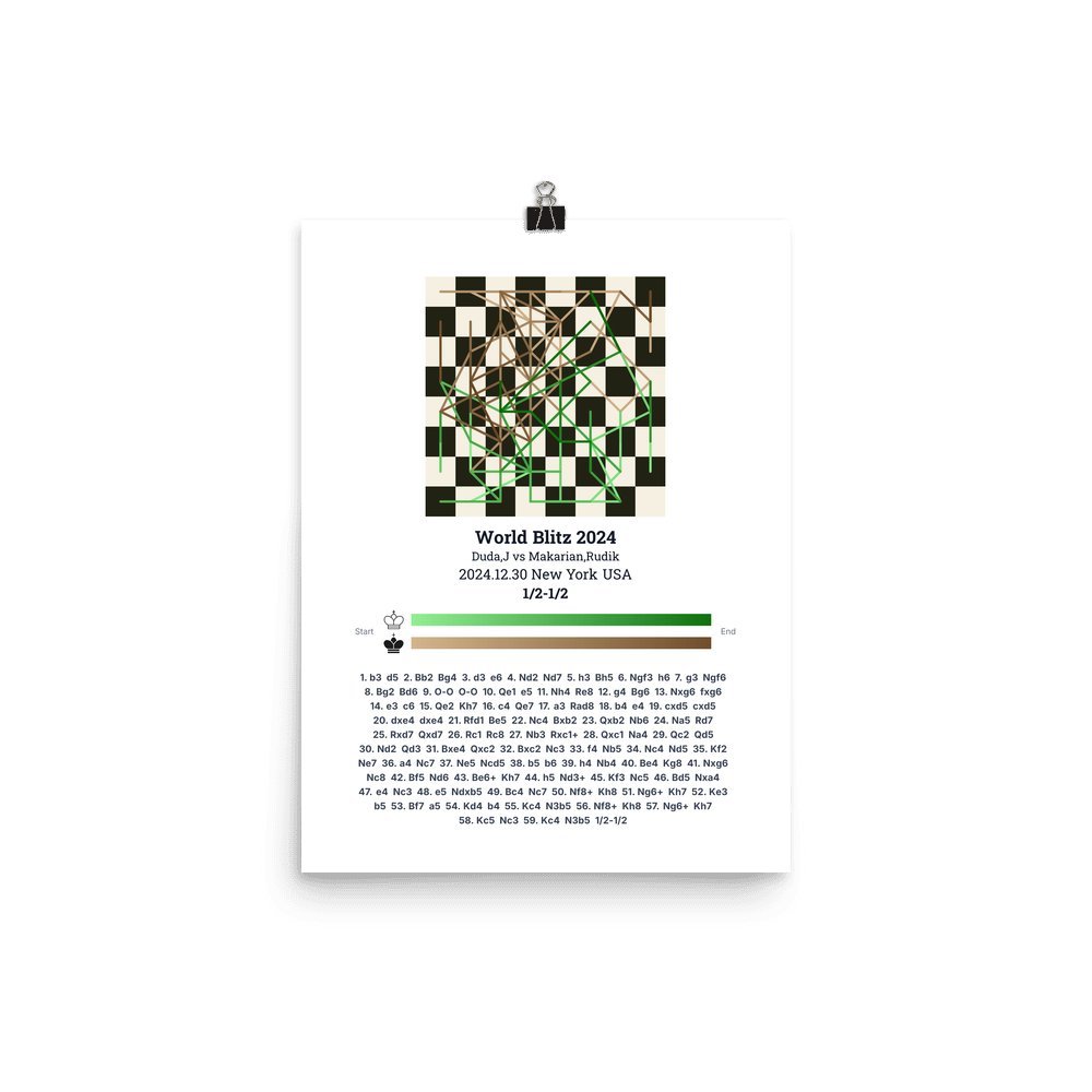 Museum-quality poster on thick, durable matte paper. A sharp, clean look for any chess visualisation.
