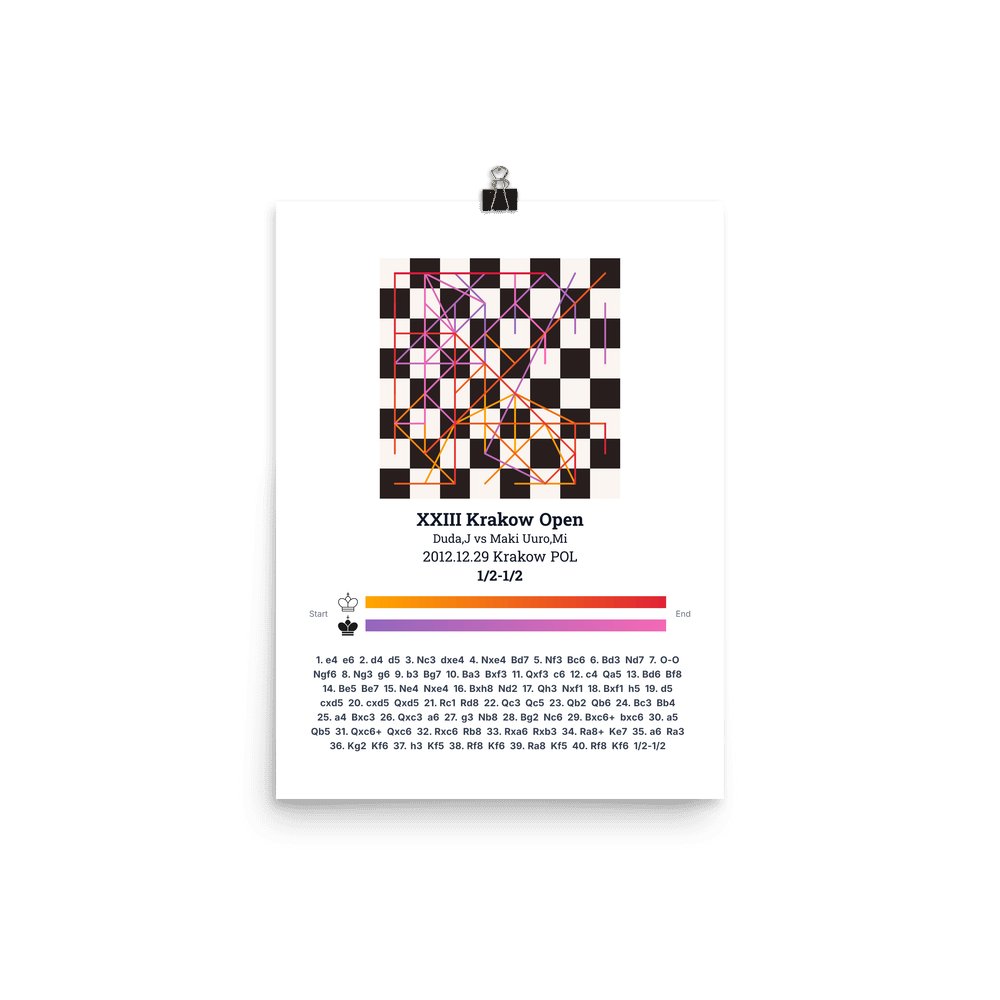 Museum-quality poster on thick, durable matte paper. A sharp, clean look for any chess visualisation.
