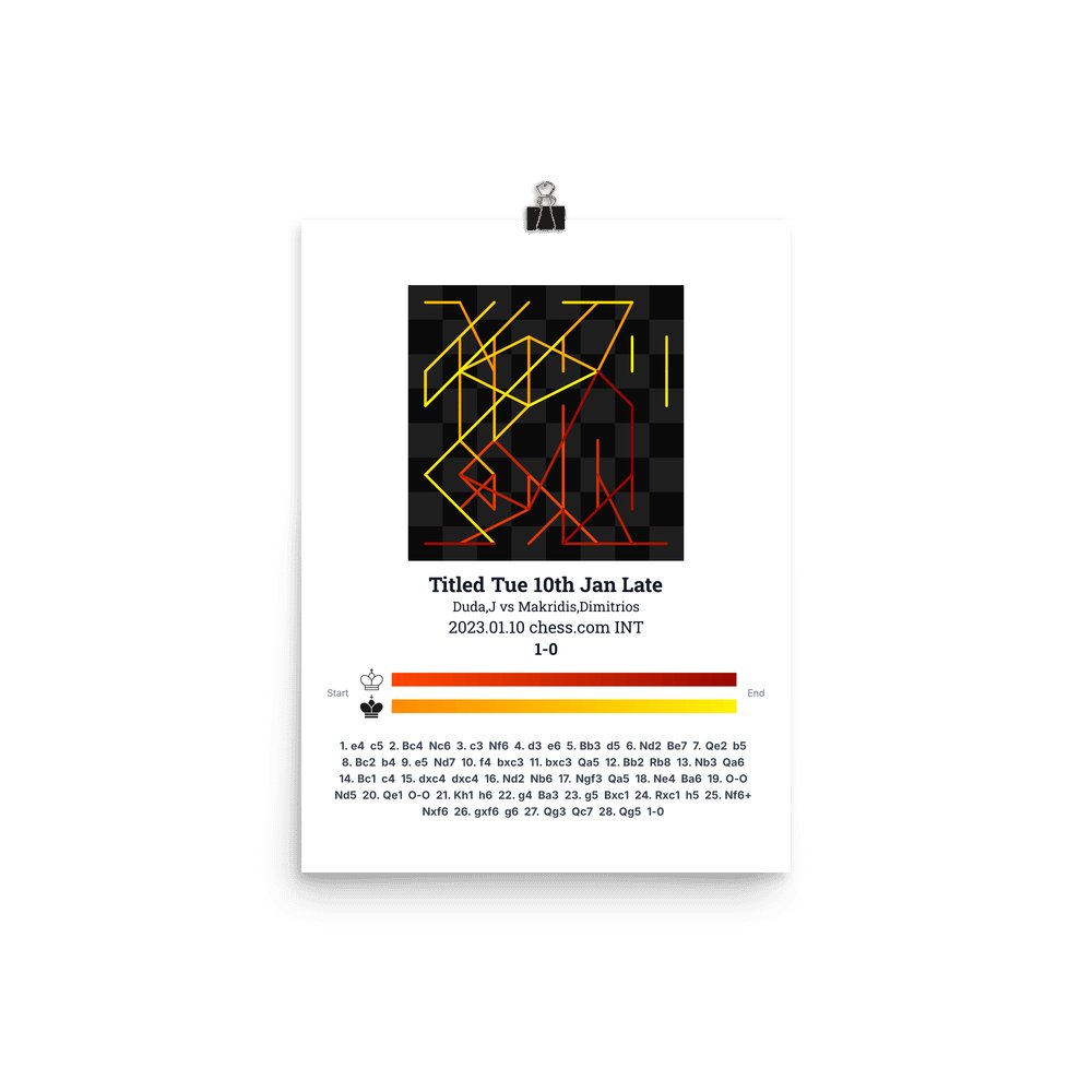 Museum-quality poster on thick, durable matte paper. A sharp, clean look for any chess visualisation.