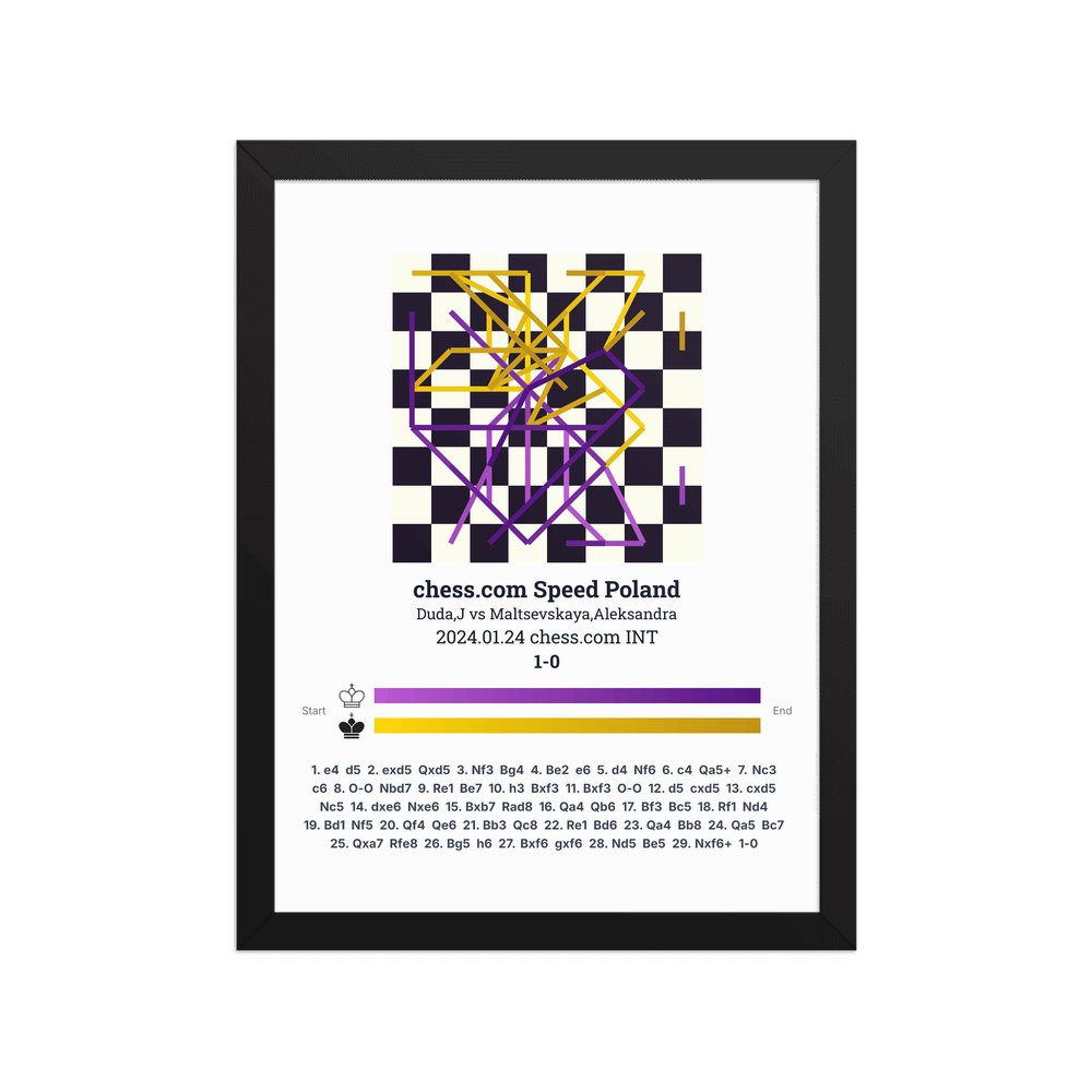 Museum-quality poster on thick, durable matte paper. A sharp, clean look for any chess visualisation.