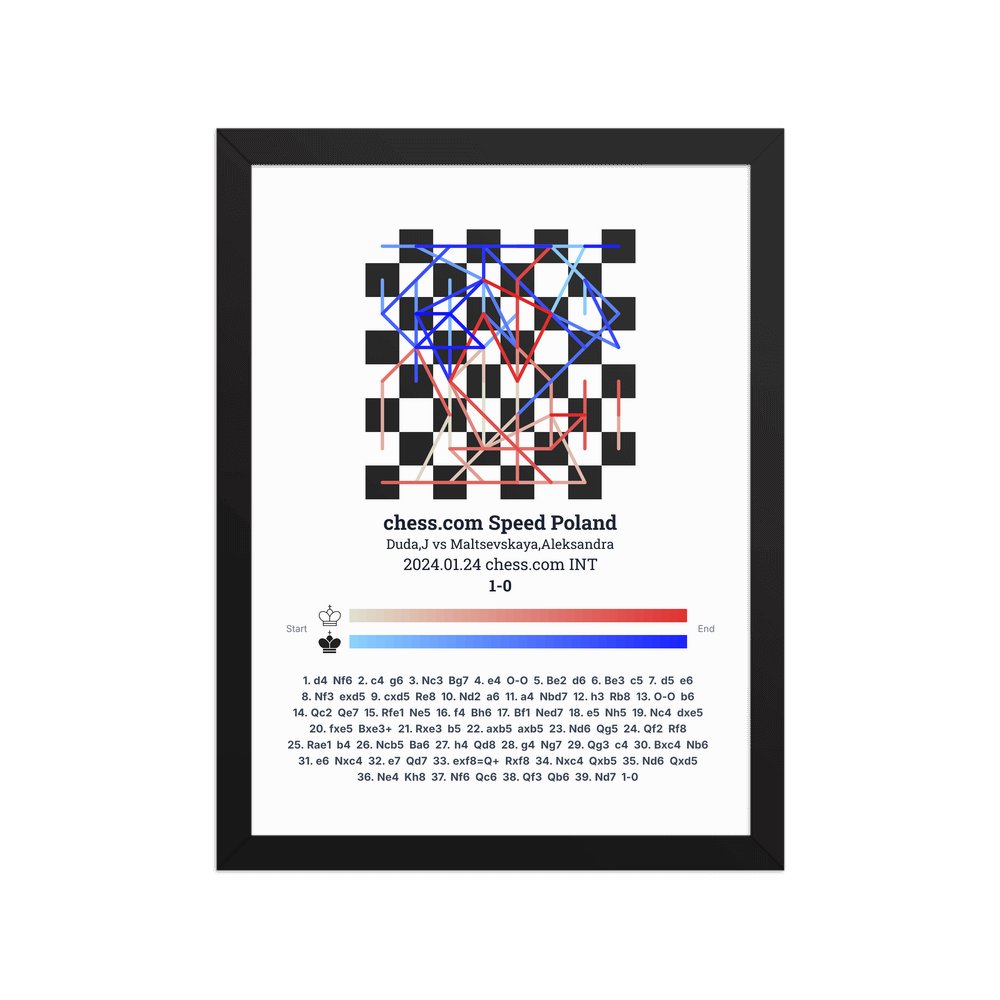 Museum-quality poster on thick, durable matte paper. A sharp, clean look for any chess visualisation.