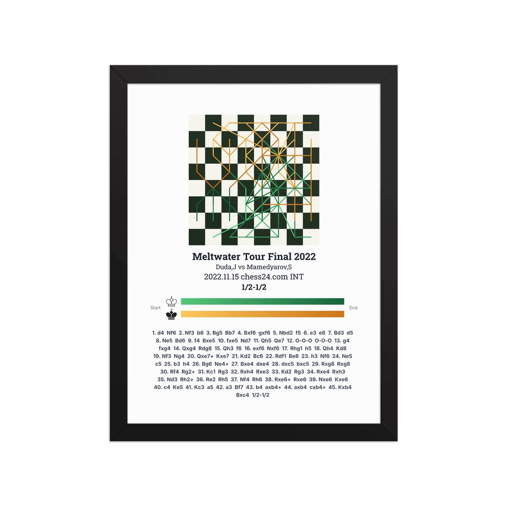 Museum-quality poster on thick, durable matte paper. A sharp, clean look for any chess visualisation.