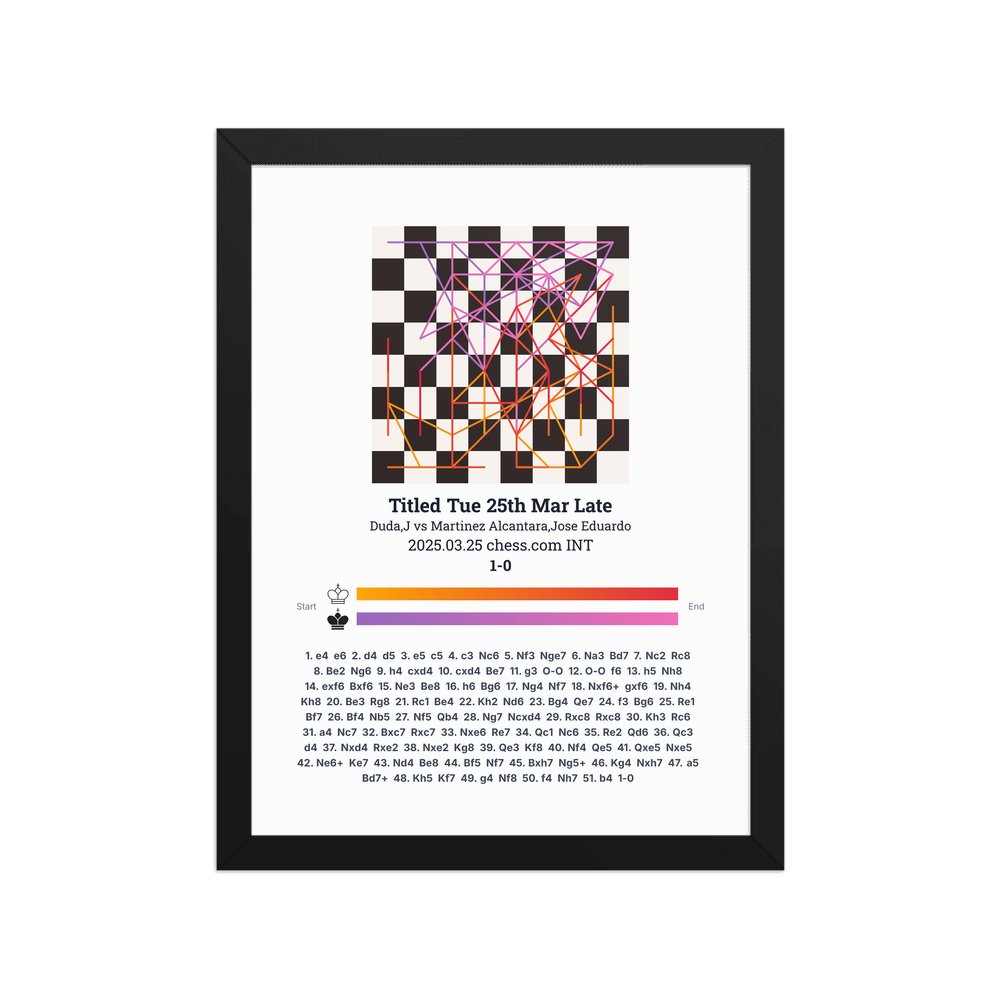 Museum-quality poster on thick, durable matte paper. A sharp, clean look for any chess visualisation.