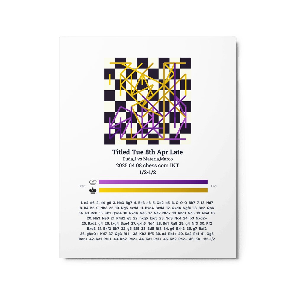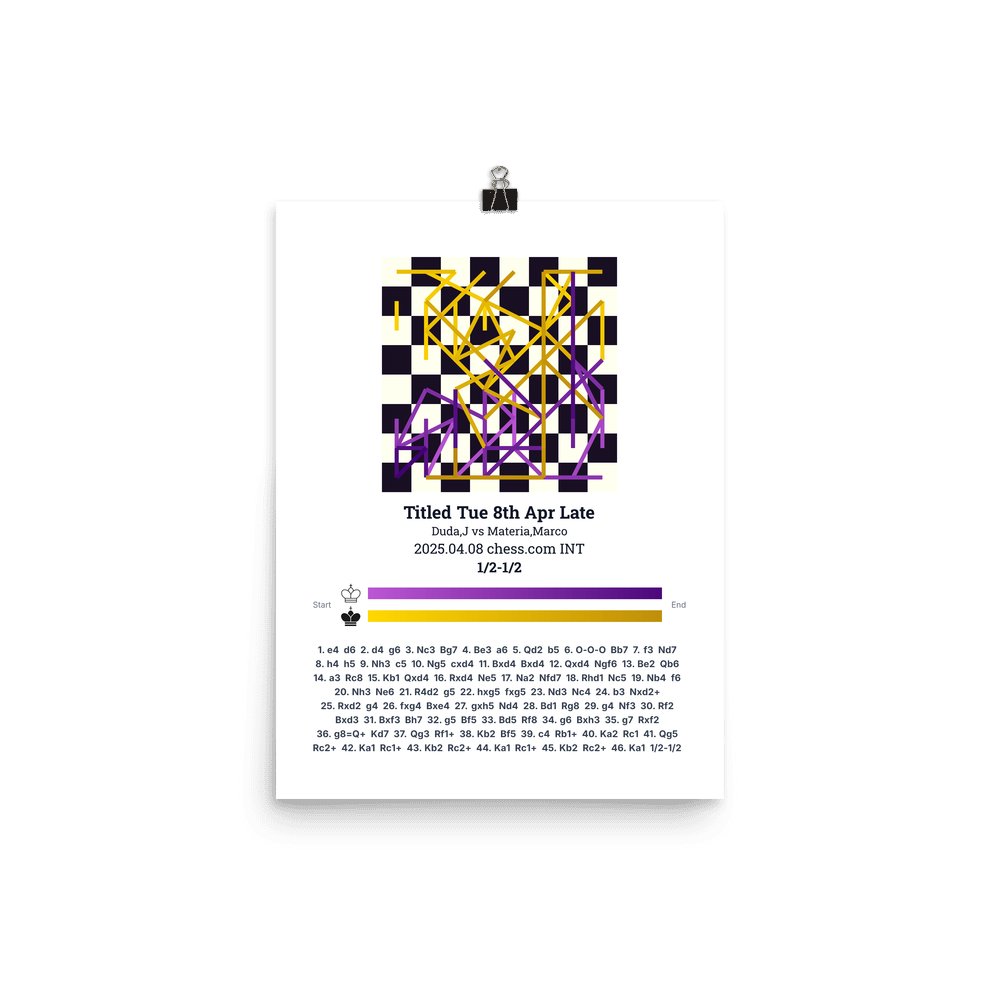 Museum-quality poster on thick, durable matte paper. A sharp, clean look for any chess visualisation.