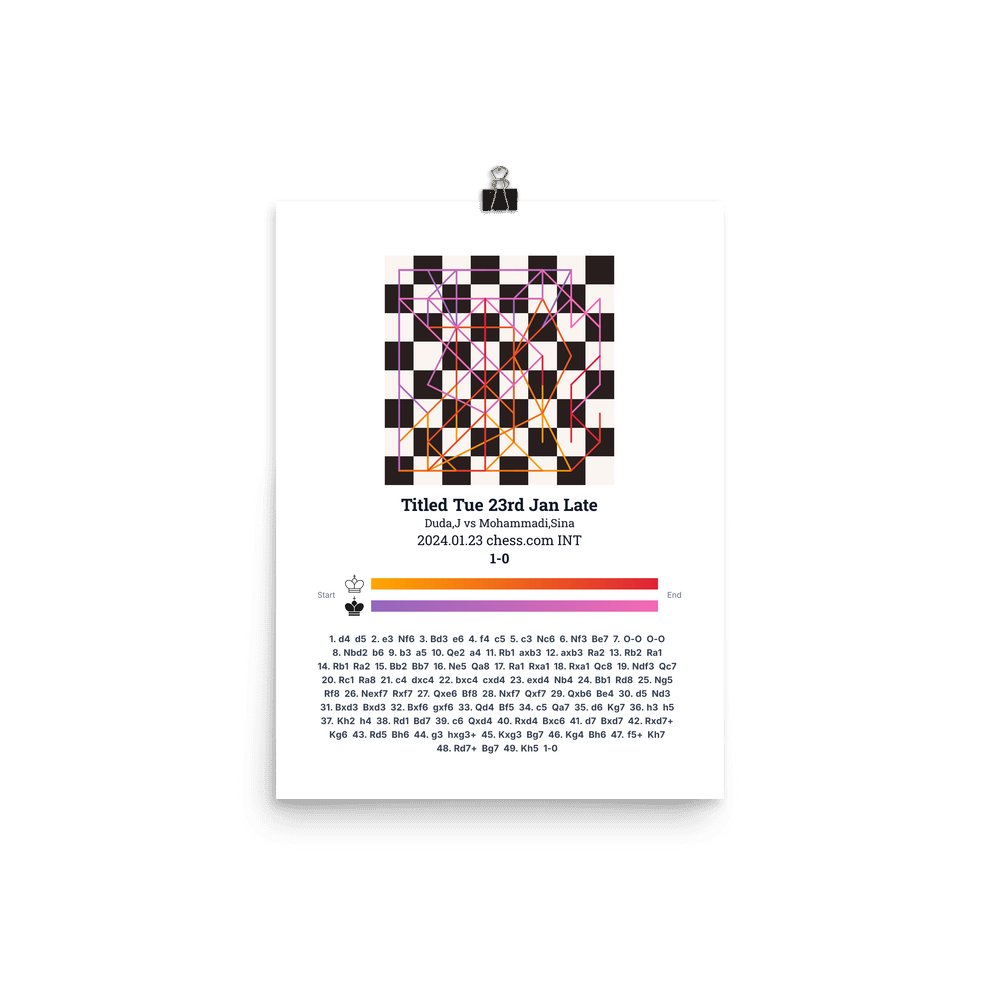 Museum-quality poster on thick, durable matte paper. A sharp, clean look for any chess visualisation.