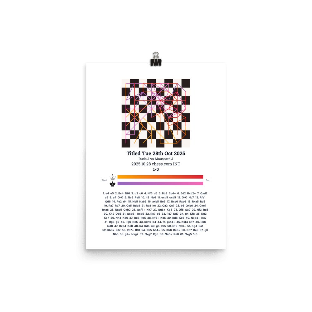 Museum-quality poster on thick, durable matte paper. A sharp, clean look for any chess visualisation.