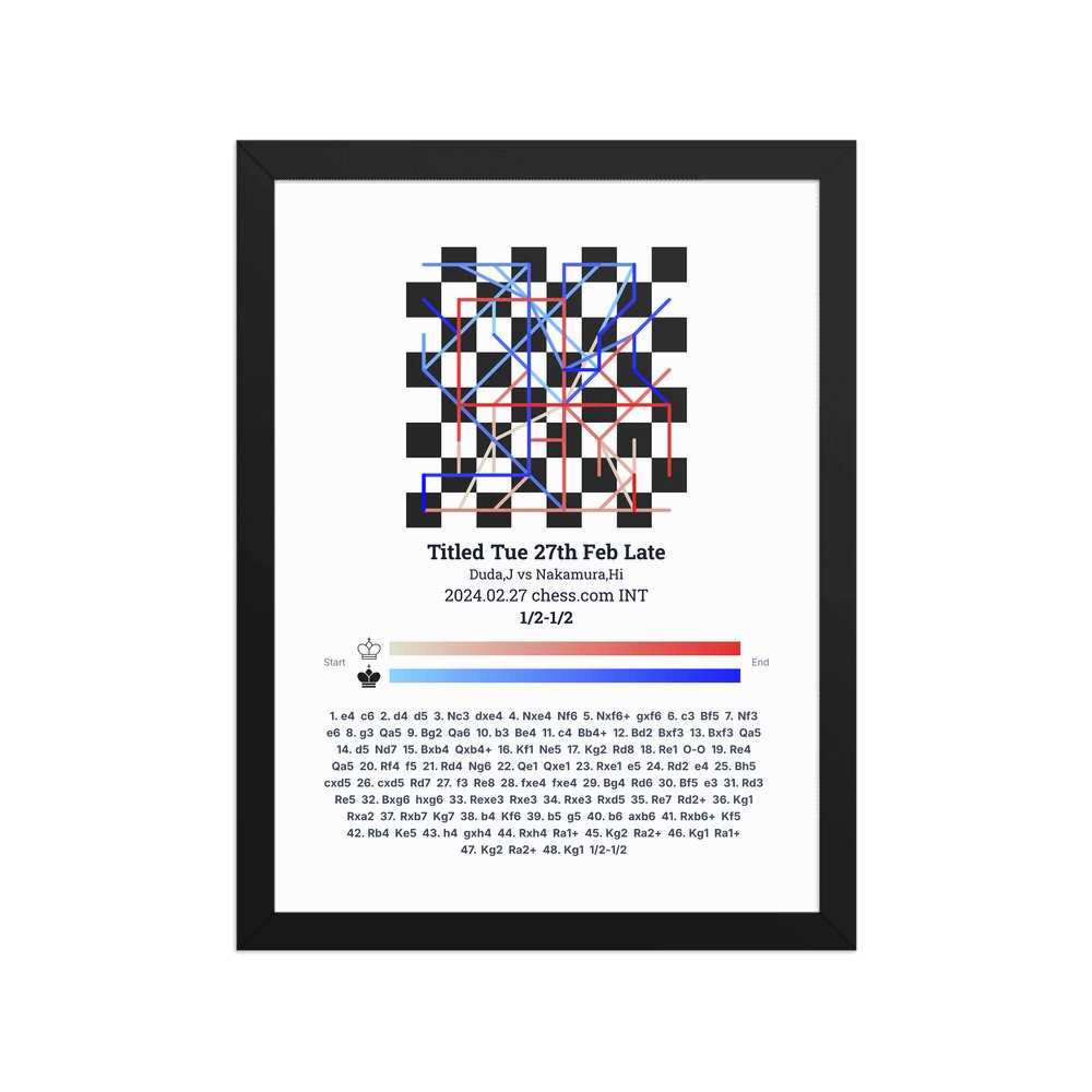 Museum-quality poster on thick, durable matte paper. A sharp, clean look for any chess visualisation.