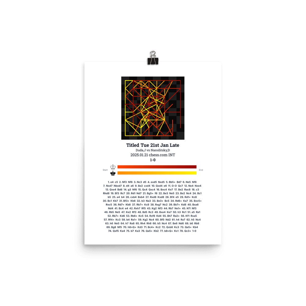 Museum-quality poster on thick, durable matte paper. A sharp, clean look for any chess visualisation.
