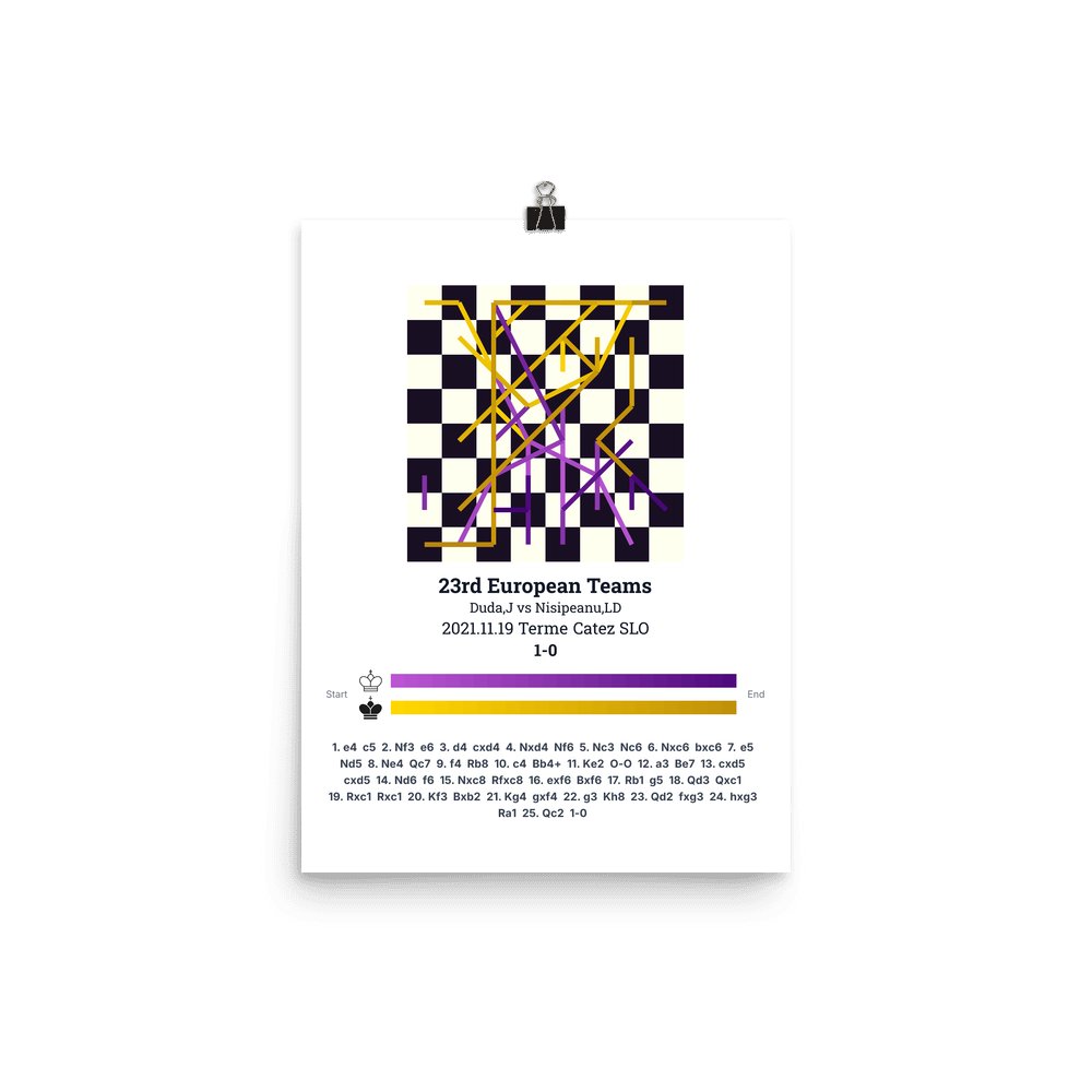 Museum-quality poster on thick, durable matte paper. A sharp, clean look for any chess visualisation.