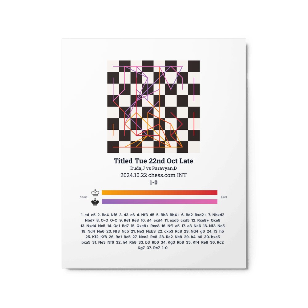 Museum-quality poster on thick, durable matte paper. A sharp, clean look for any chess visualisation.