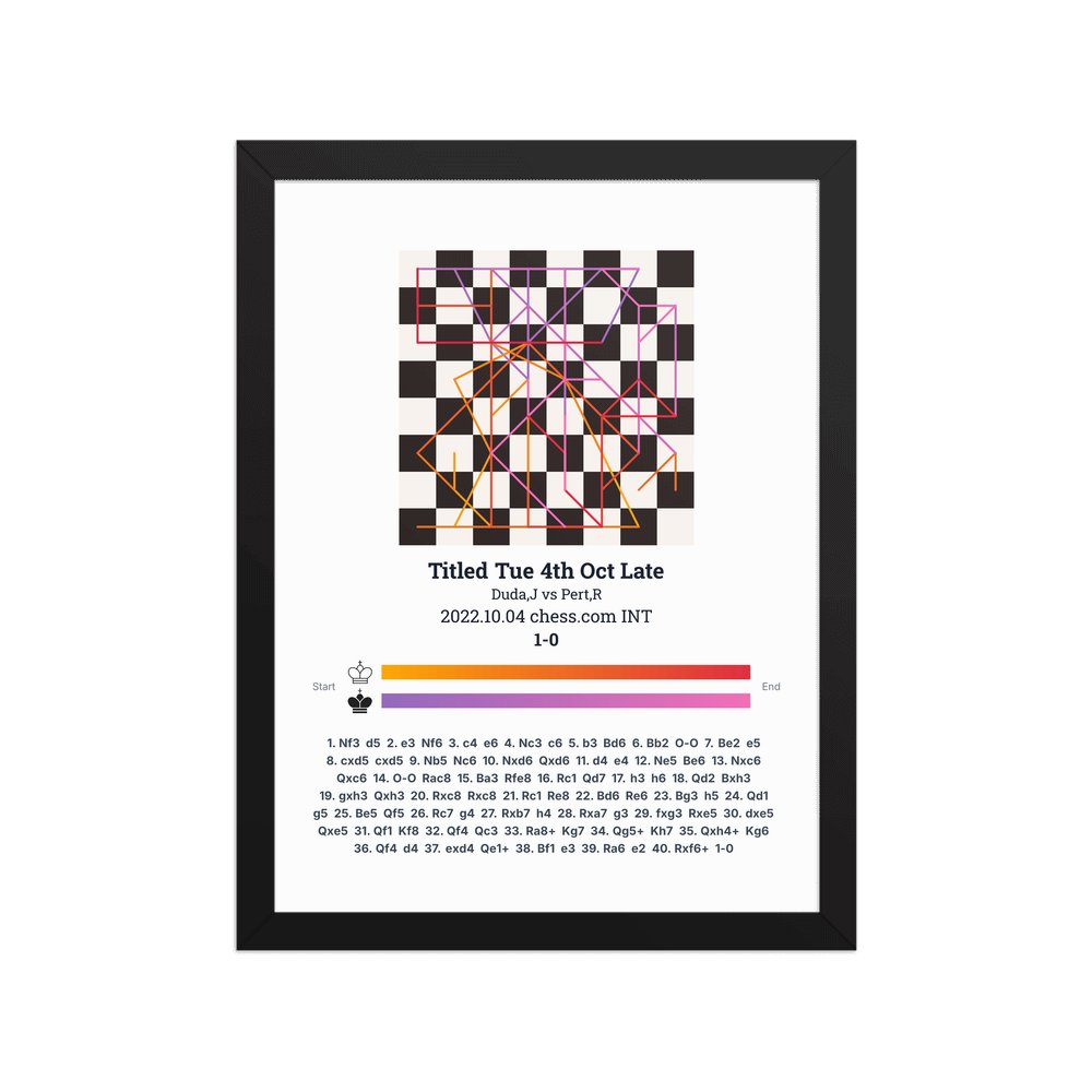 Museum-quality poster on thick, durable matte paper. A sharp, clean look for any chess visualisation.