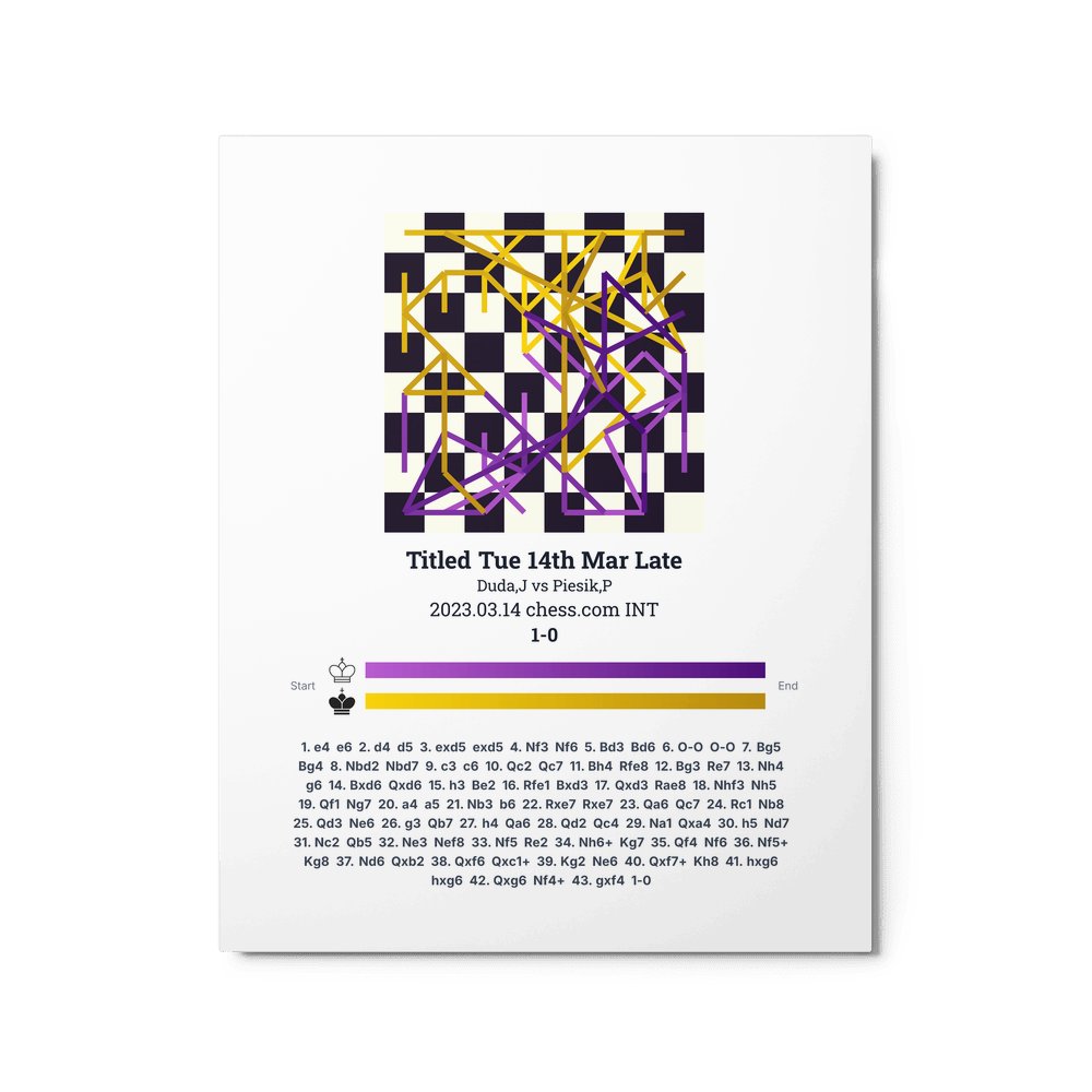 Museum-quality poster on thick, durable matte paper. A sharp, clean look for any chess visualisation.