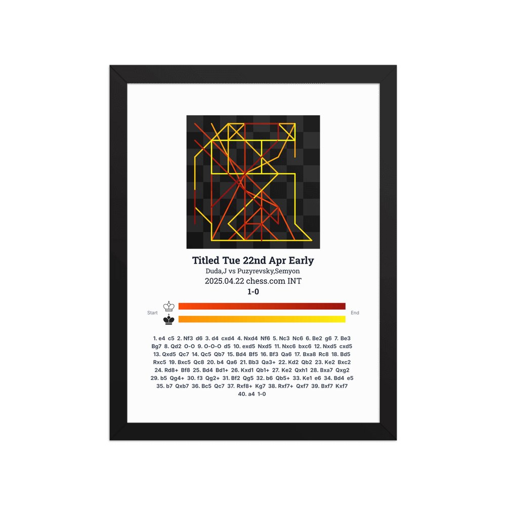 Museum-quality poster on thick, durable matte paper. A sharp, clean look for any chess visualisation.