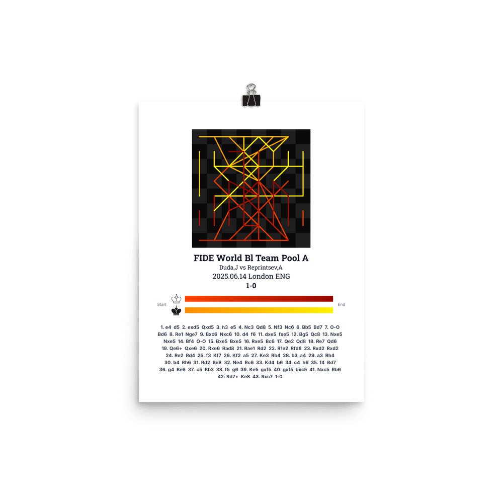 Museum-quality poster on thick, durable matte paper. A sharp, clean look for any chess visualisation.