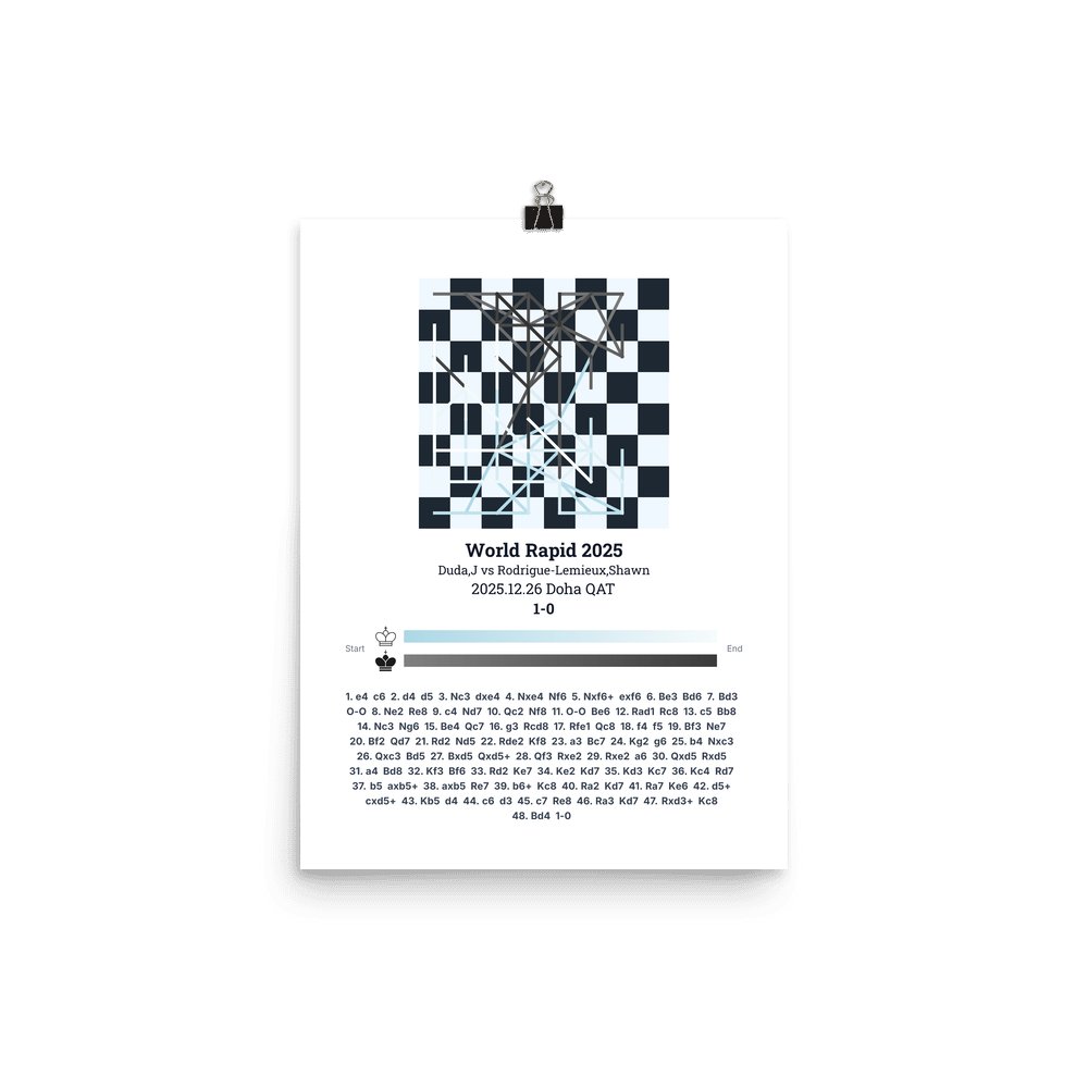 Museum-quality poster on thick, durable matte paper. A sharp, clean look for any chess visualisation.