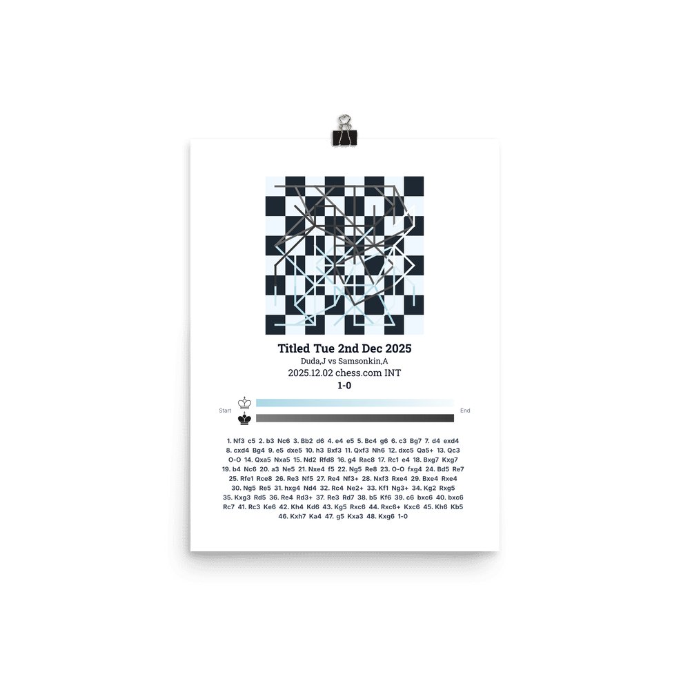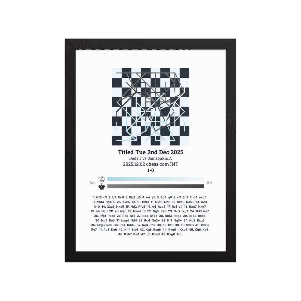 Museum-quality poster on thick, durable matte paper. A sharp, clean look for any chess visualisation.
