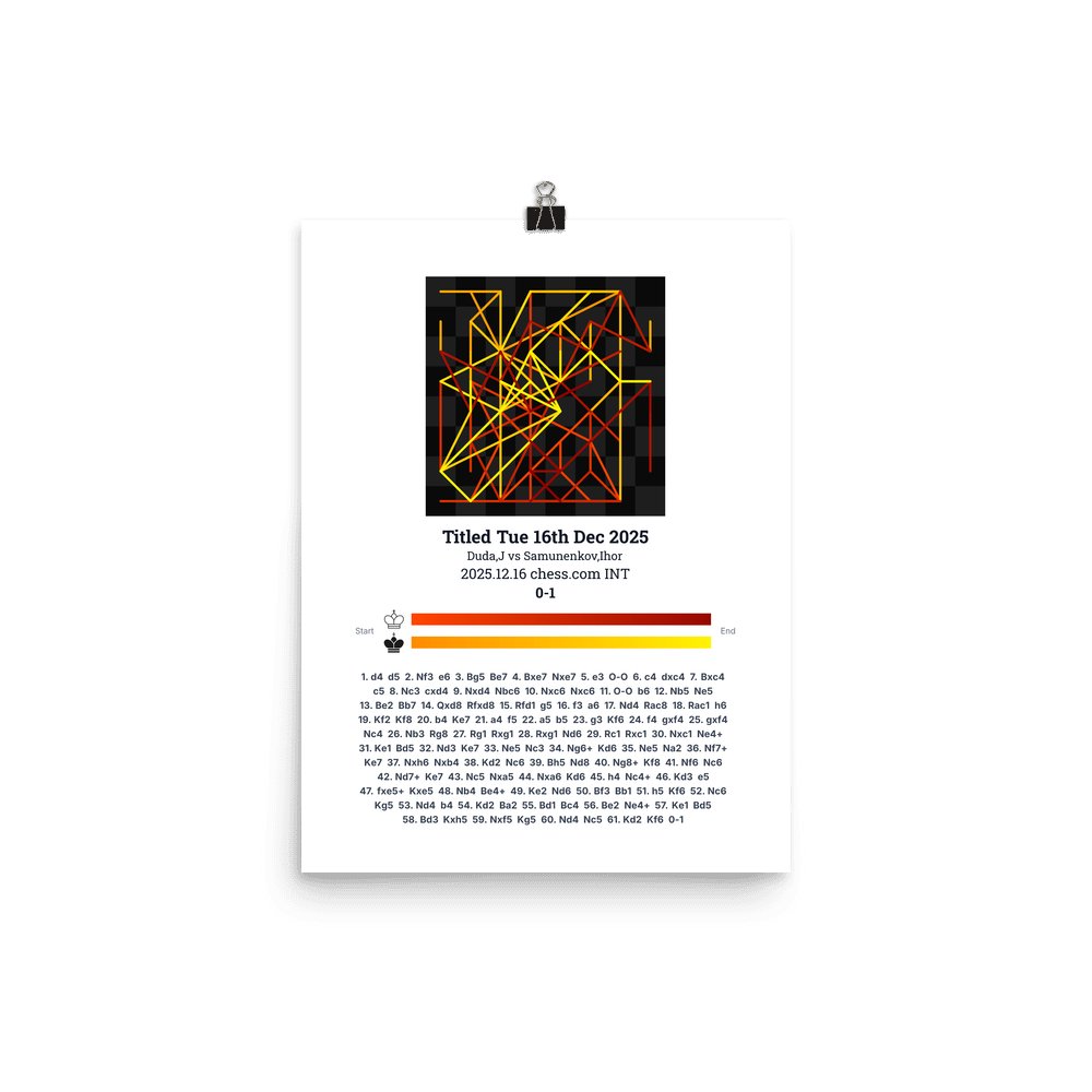 Museum-quality poster on thick, durable matte paper. A sharp, clean look for any chess visualisation.