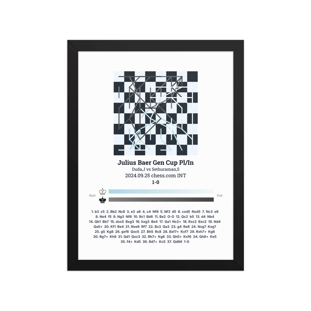 Museum-quality poster on thick, durable matte paper. A sharp, clean look for any chess visualisation.