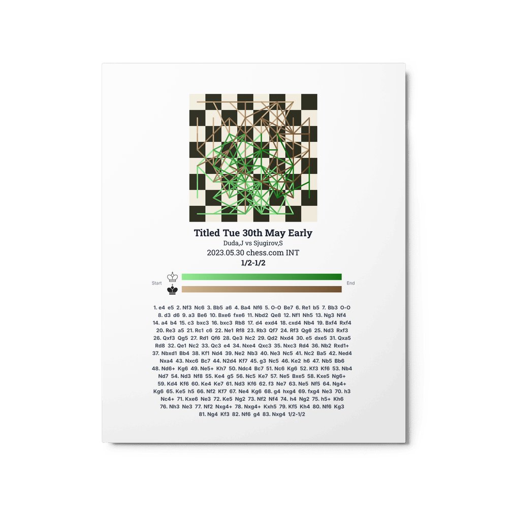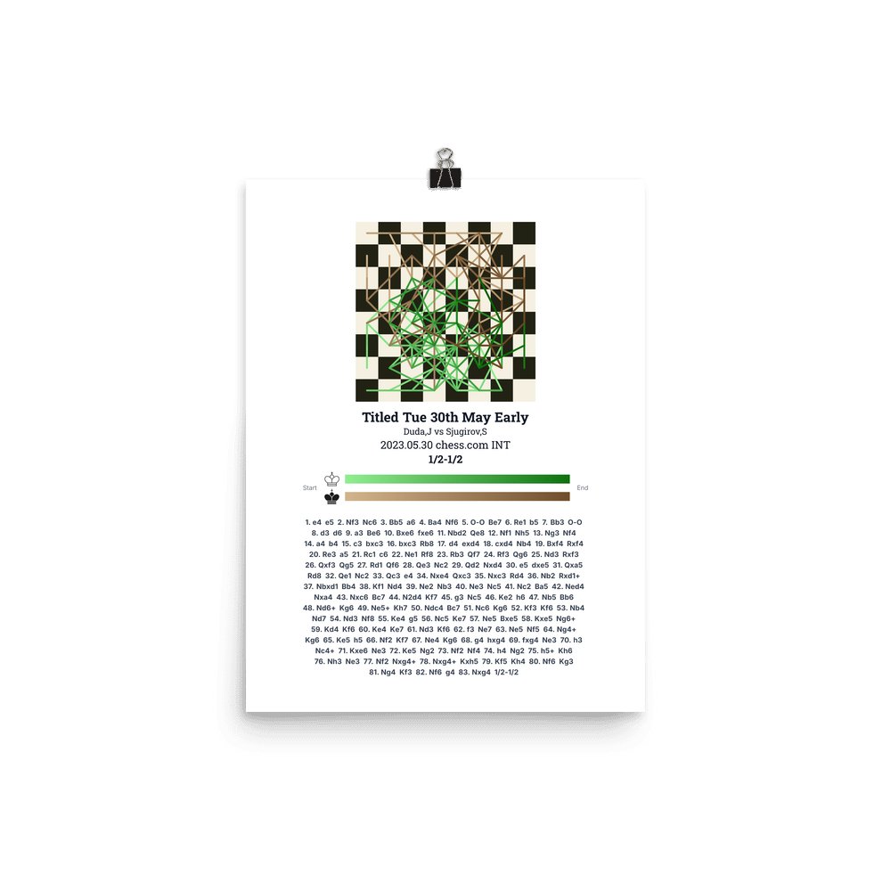 Museum-quality poster on thick, durable matte paper. A sharp, clean look for any chess visualisation.