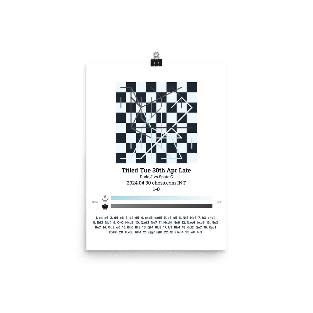 Museum-quality poster on thick, durable matte paper. A sharp, clean look for any chess visualisation.