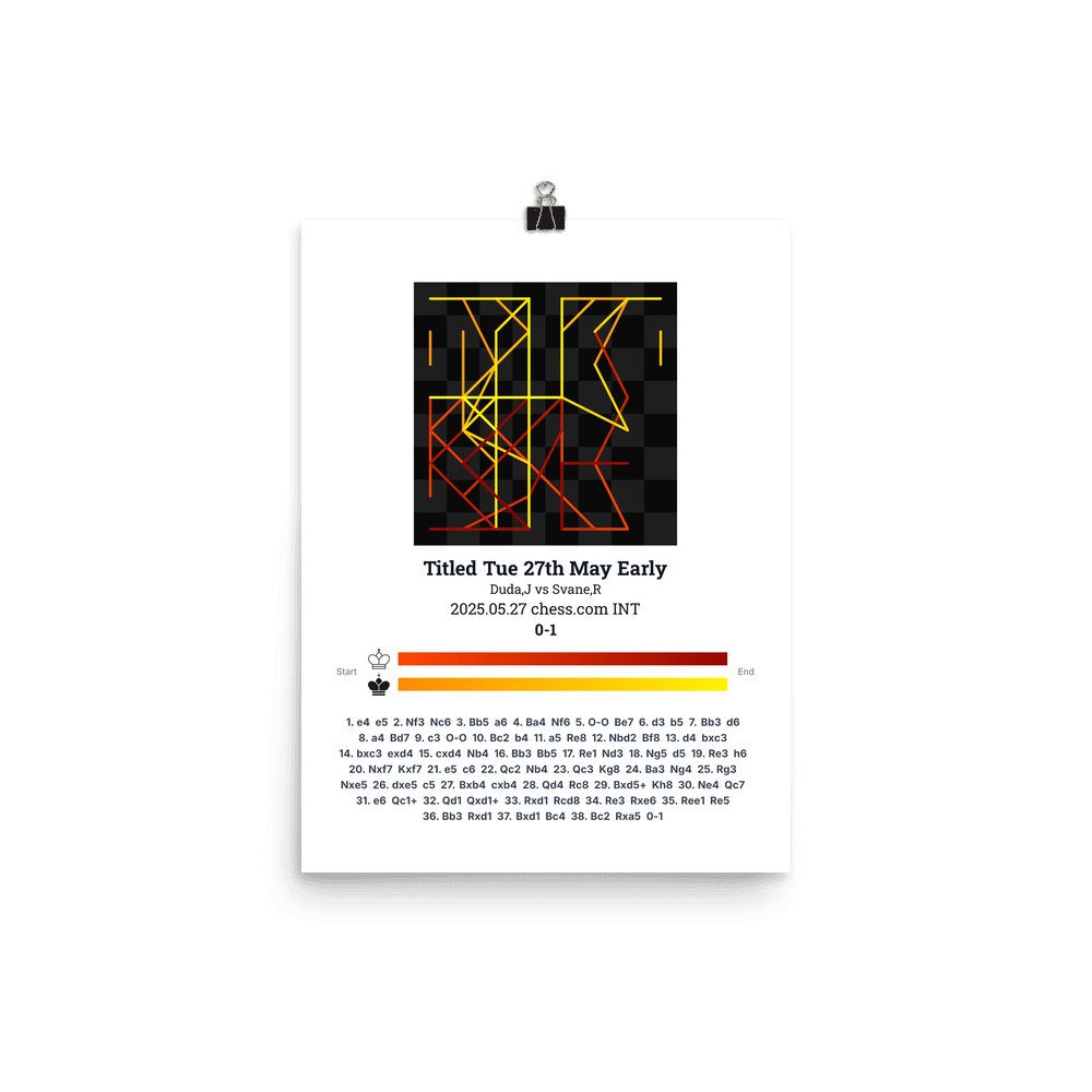Museum-quality poster on thick, durable matte paper. A sharp, clean look for any chess visualisation.