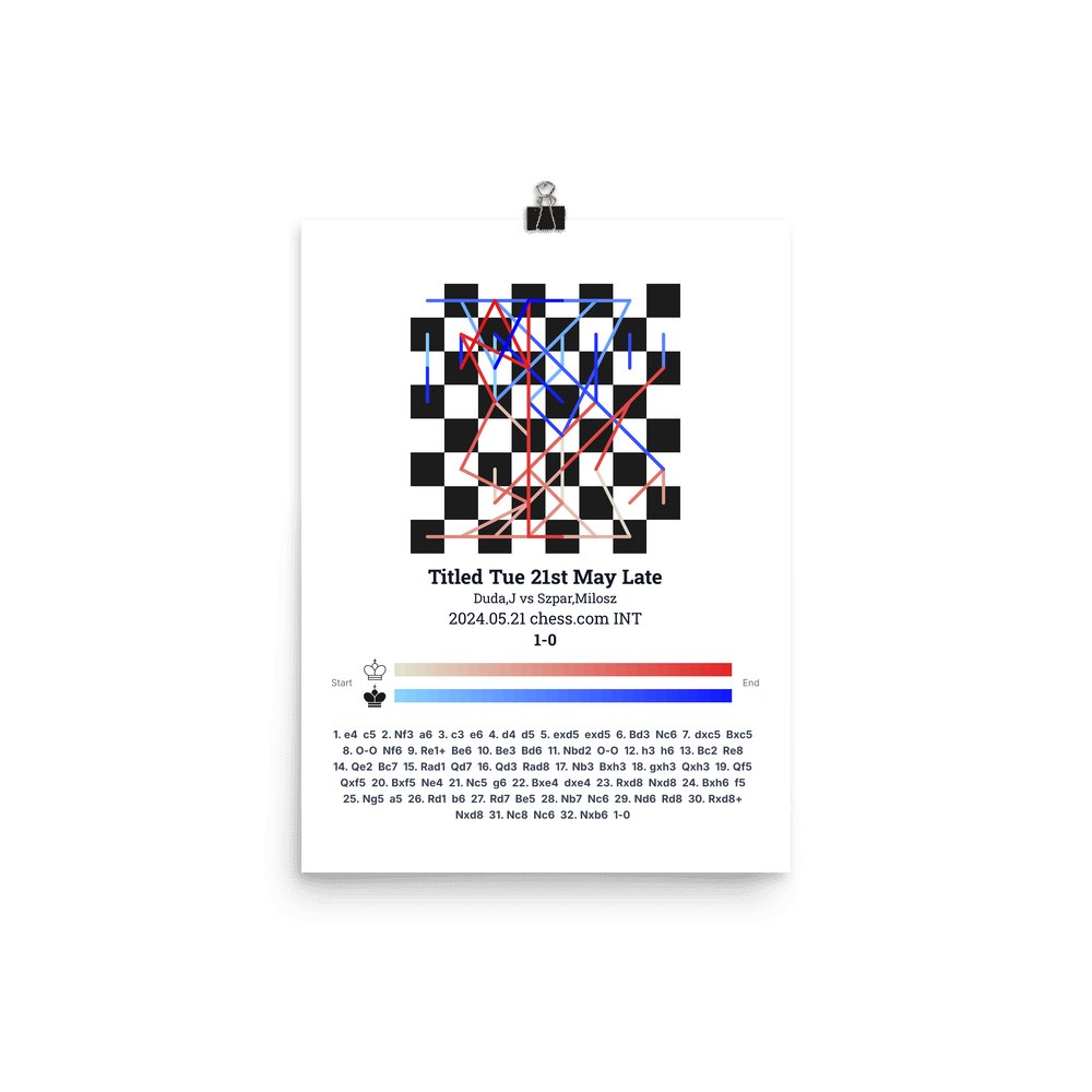 Museum-quality poster on thick, durable matte paper. A sharp, clean look for any chess visualisation.