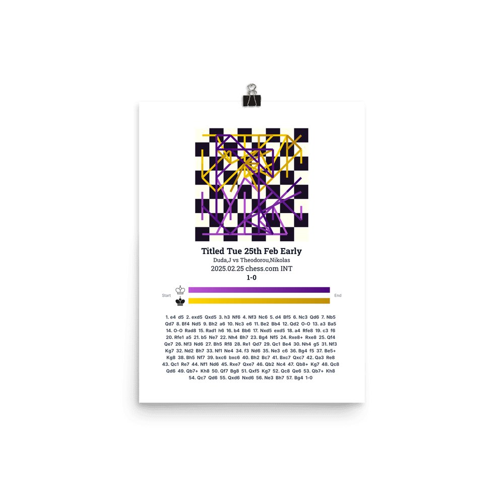 Museum-quality poster on thick, durable matte paper. A sharp, clean look for any chess visualisation.