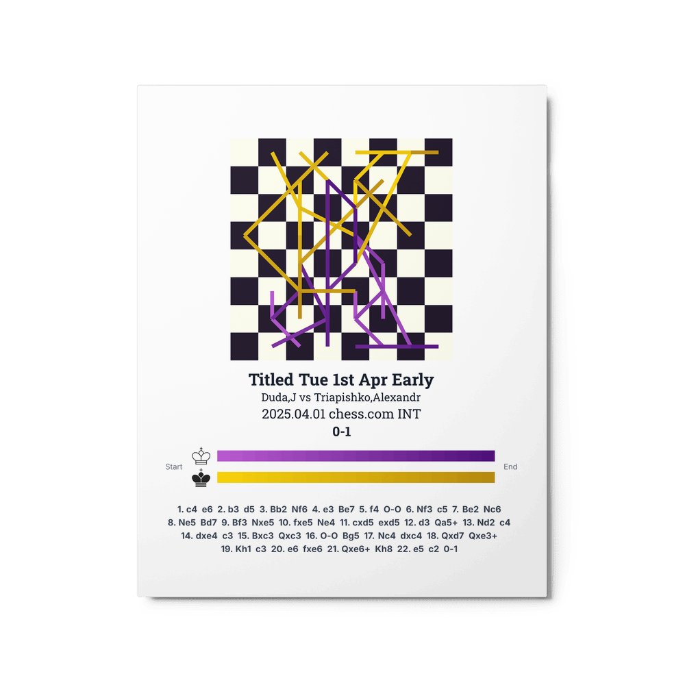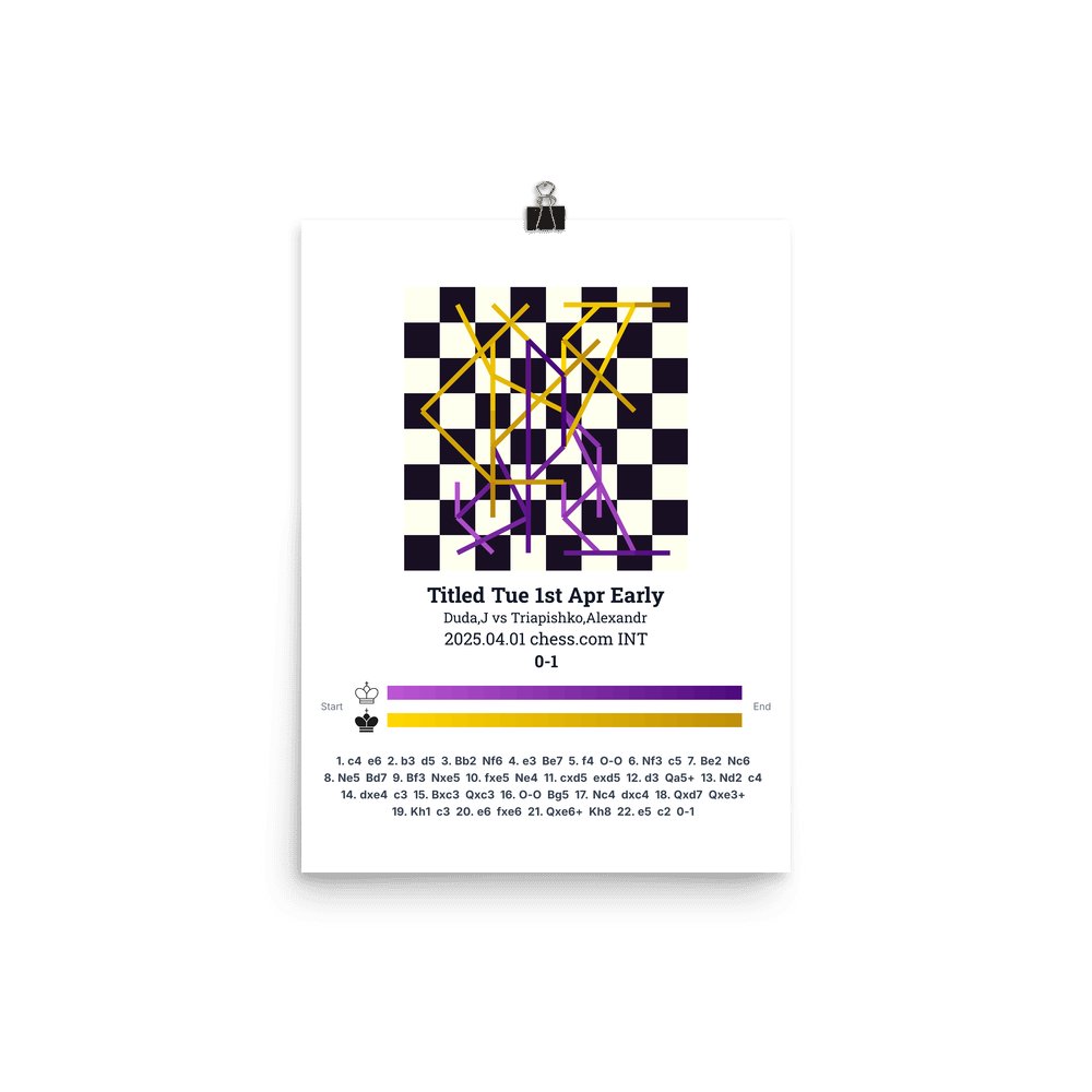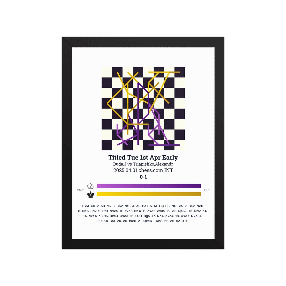 Museum-quality poster on thick, durable matte paper. A sharp, clean look for any chess visualisation.