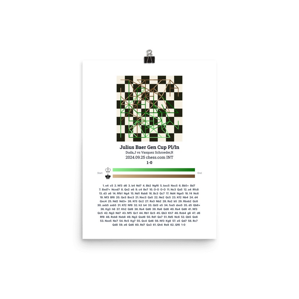 Museum-quality poster on thick, durable matte paper. A sharp, clean look for any chess visualisation.