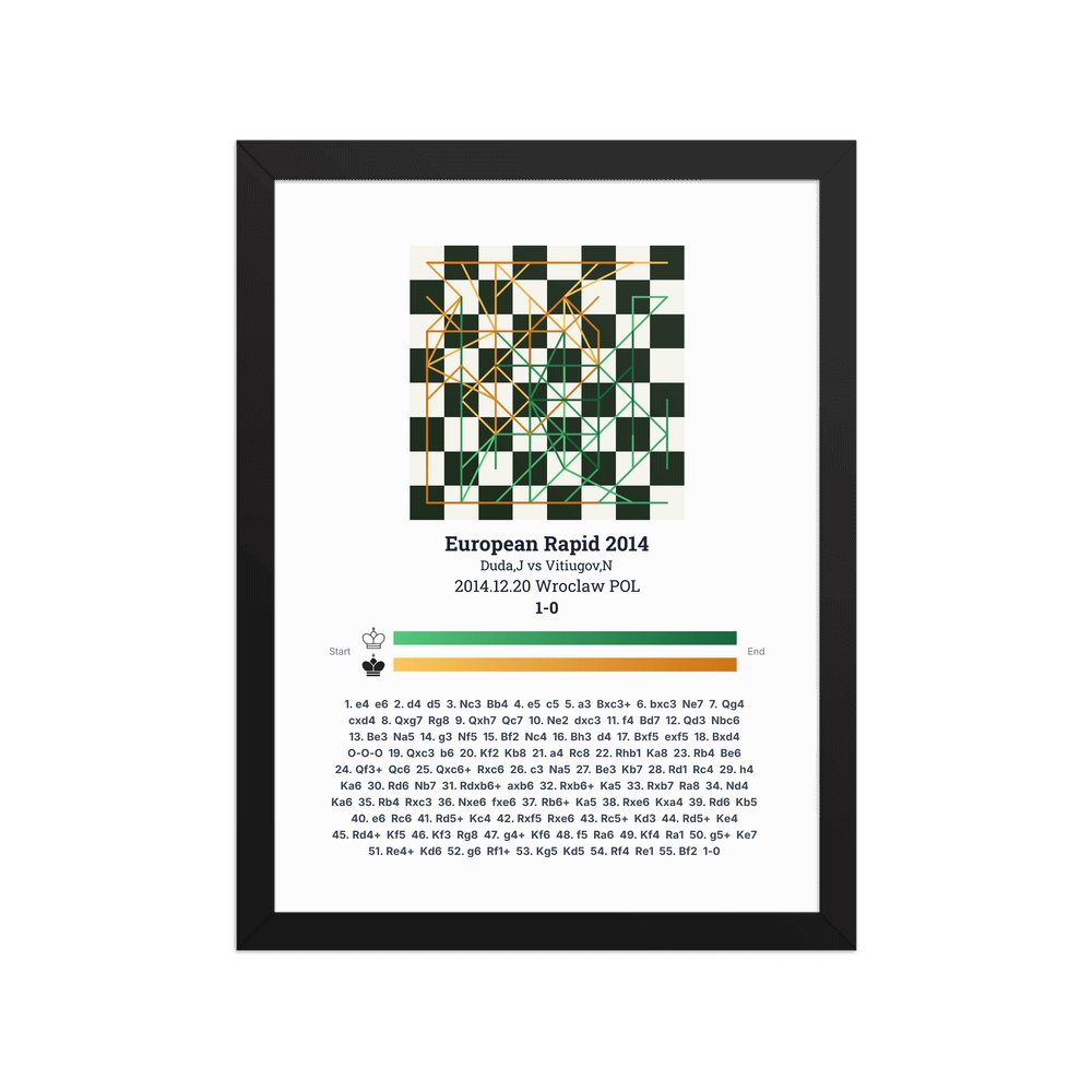 Museum-quality poster on thick, durable matte paper. A sharp, clean look for any chess visualisation.