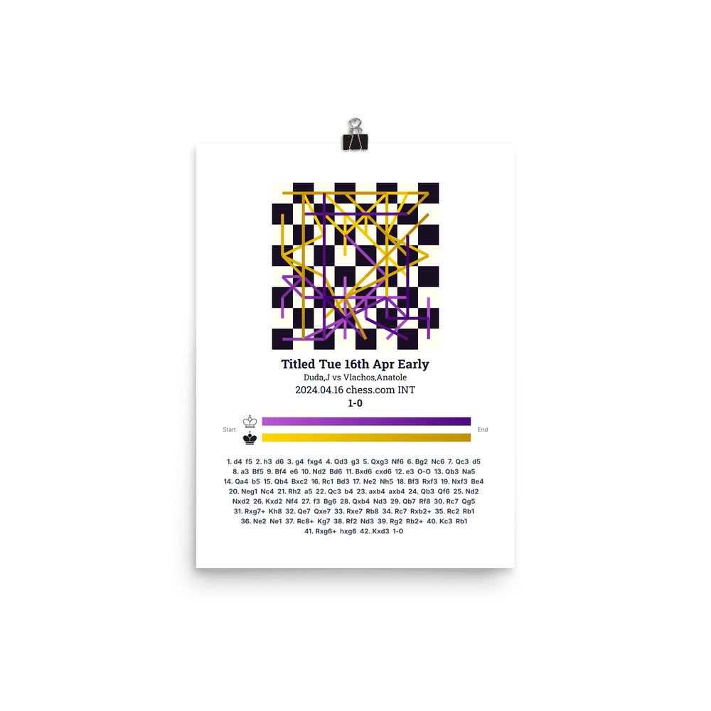 Museum-quality poster on thick, durable matte paper. A sharp, clean look for any chess visualisation.