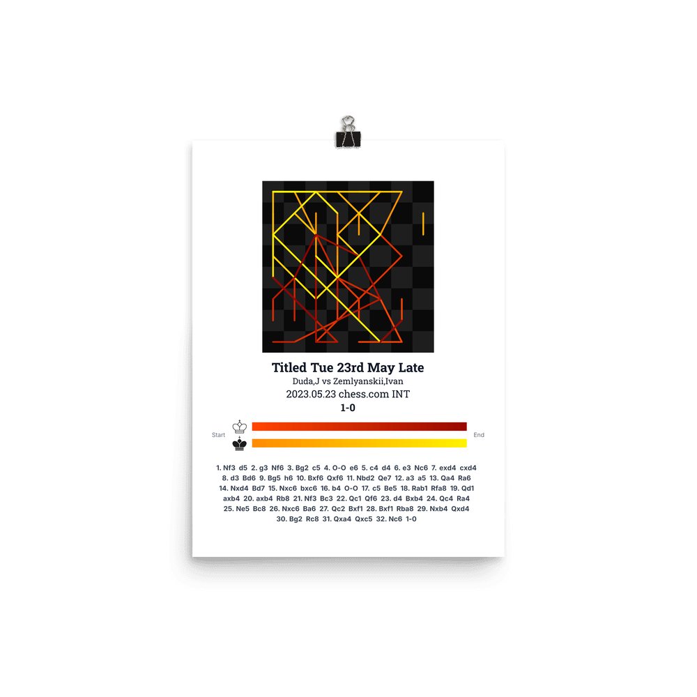 Museum-quality poster on thick, durable matte paper. A sharp, clean look for any chess visualisation.