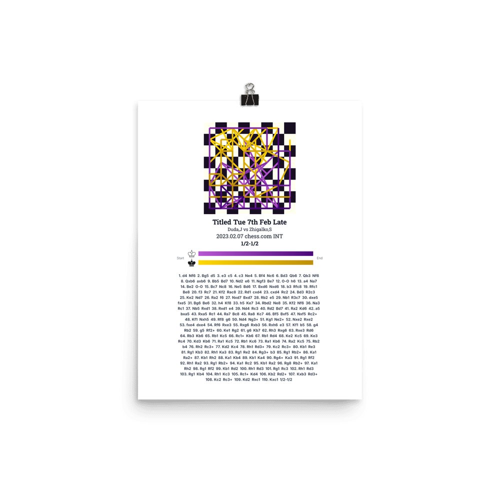Museum-quality poster on thick, durable matte paper. A sharp, clean look for any chess visualisation.