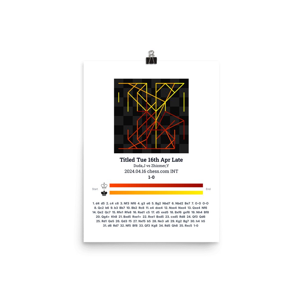 Museum-quality poster on thick, durable matte paper. A sharp, clean look for any chess visualisation.