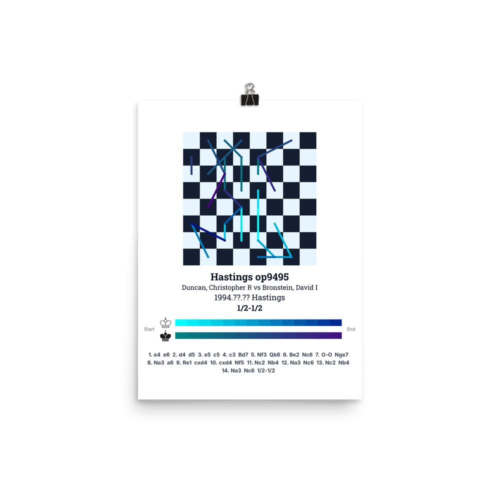 Museum-quality poster on thick, durable matte paper. A sharp, clean look for any chess visualisation.
