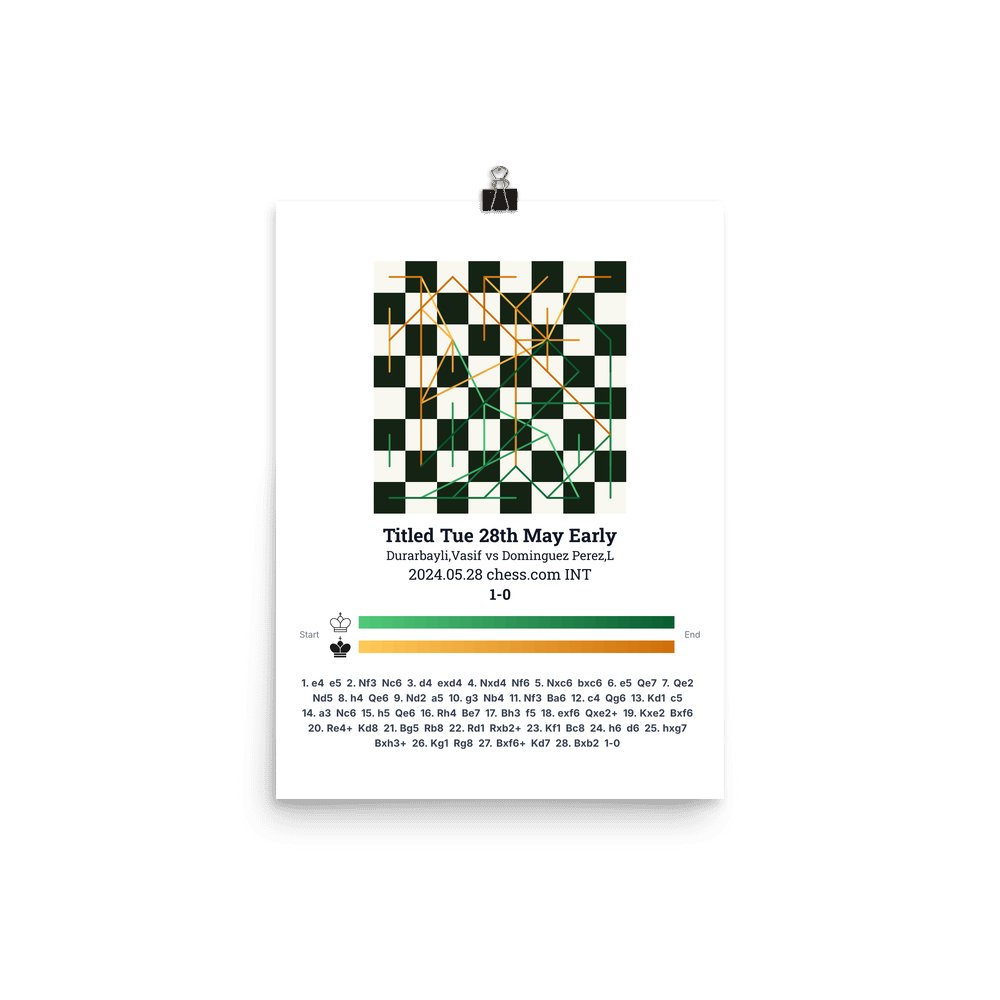Museum-quality poster on thick, durable matte paper. A sharp, clean look for any chess visualisation.