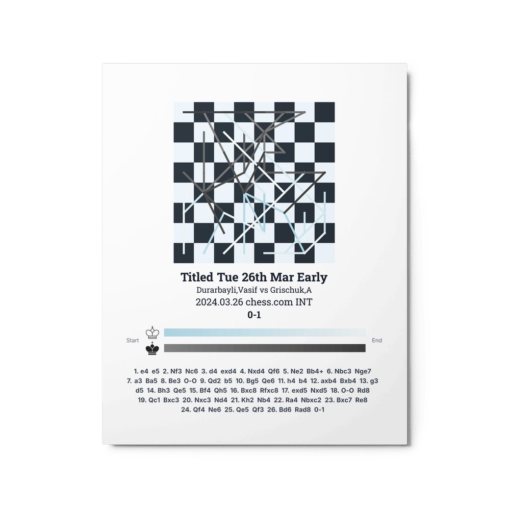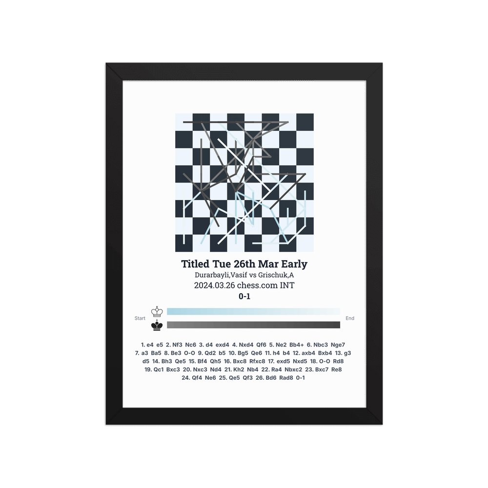 Museum-quality poster on thick, durable matte paper. A sharp, clean look for any chess visualisation.