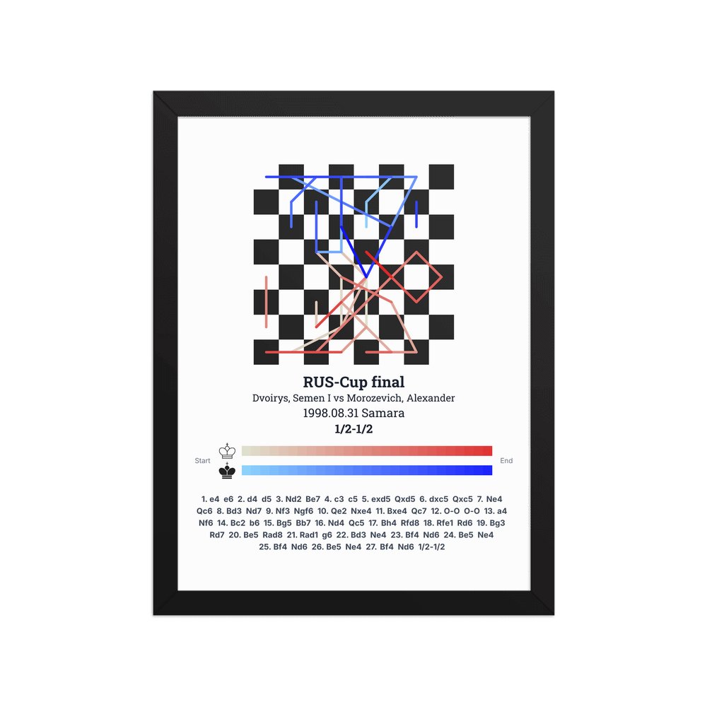 Museum-quality poster on thick, durable matte paper. A sharp, clean look for any chess visualisation.
