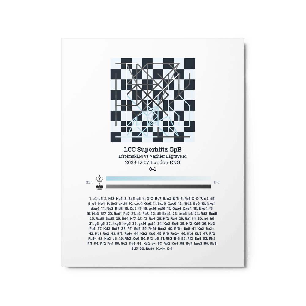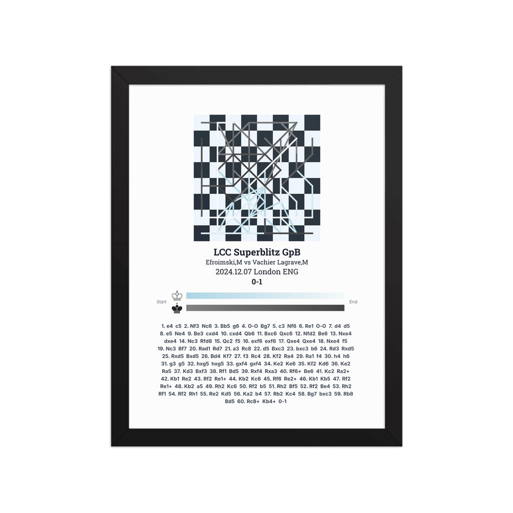 Museum-quality poster on thick, durable matte paper. A sharp, clean look for any chess visualisation.