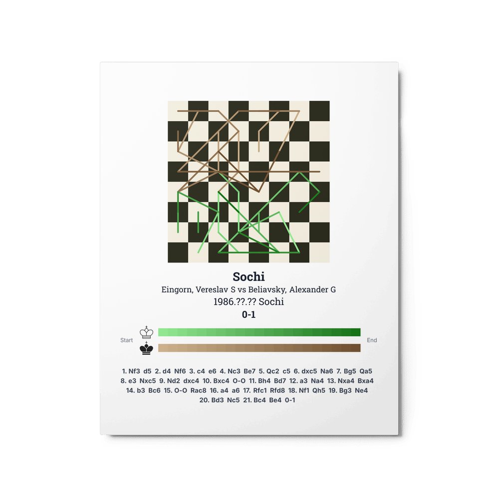 Museum-quality poster on thick, durable matte paper. A sharp, clean look for any chess visualisation.