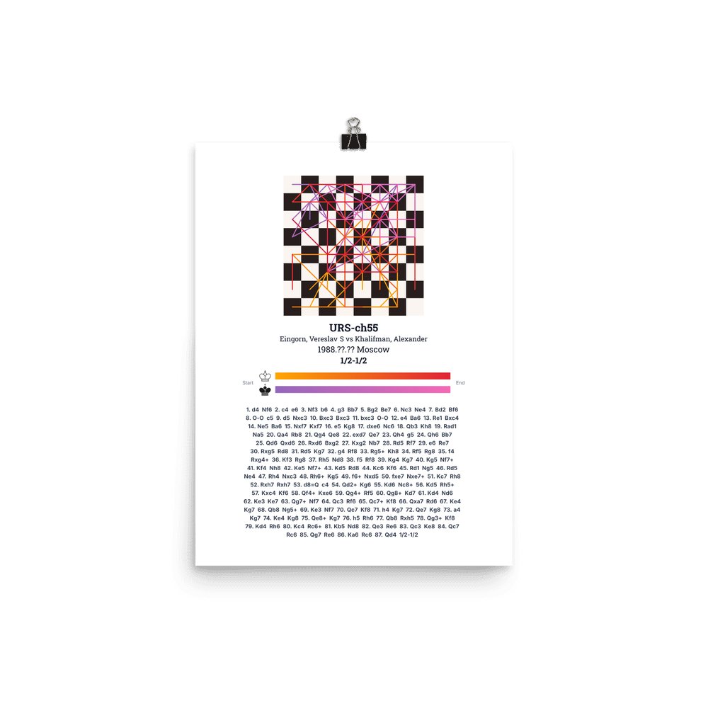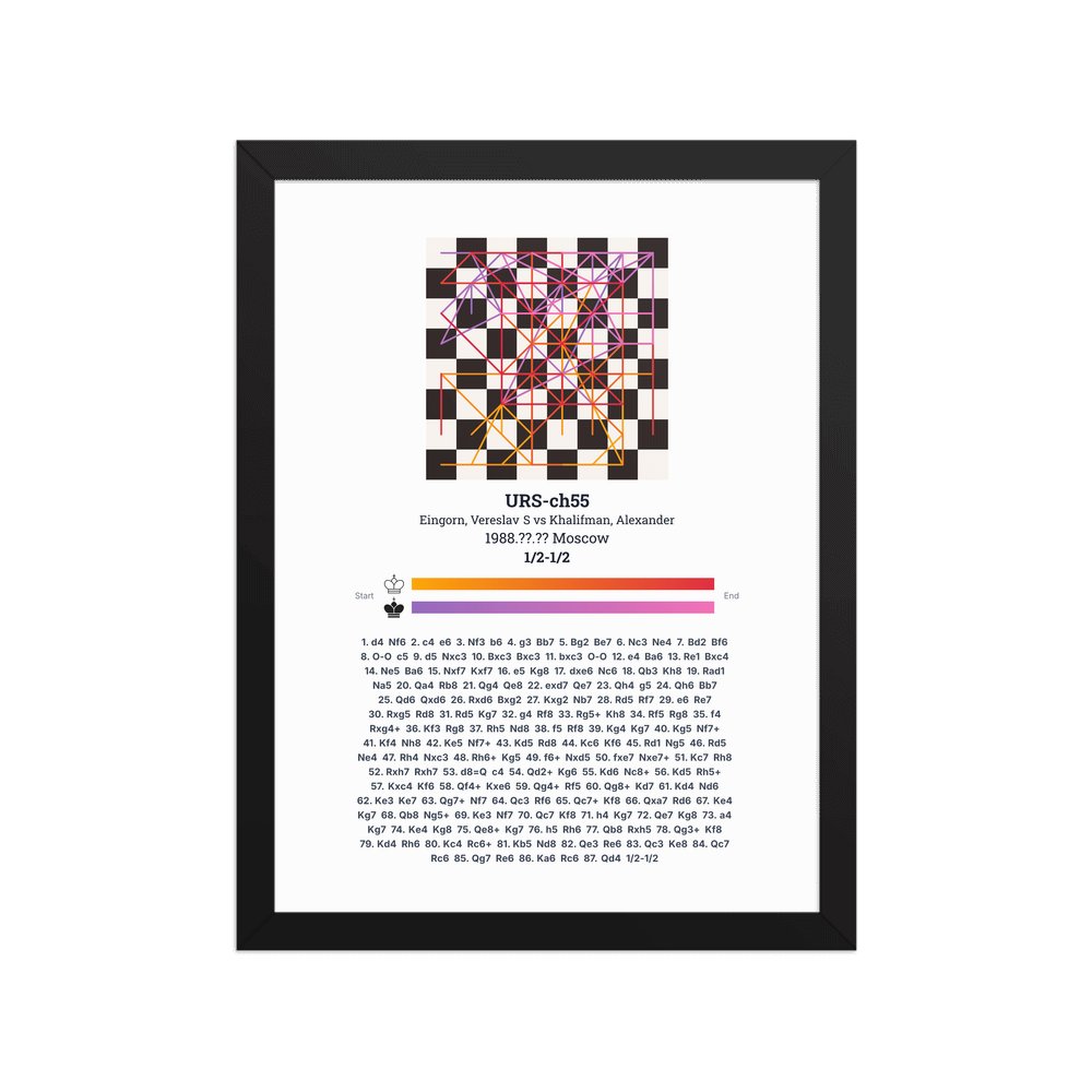 Museum-quality poster on thick, durable matte paper. A sharp, clean look for any chess visualisation.