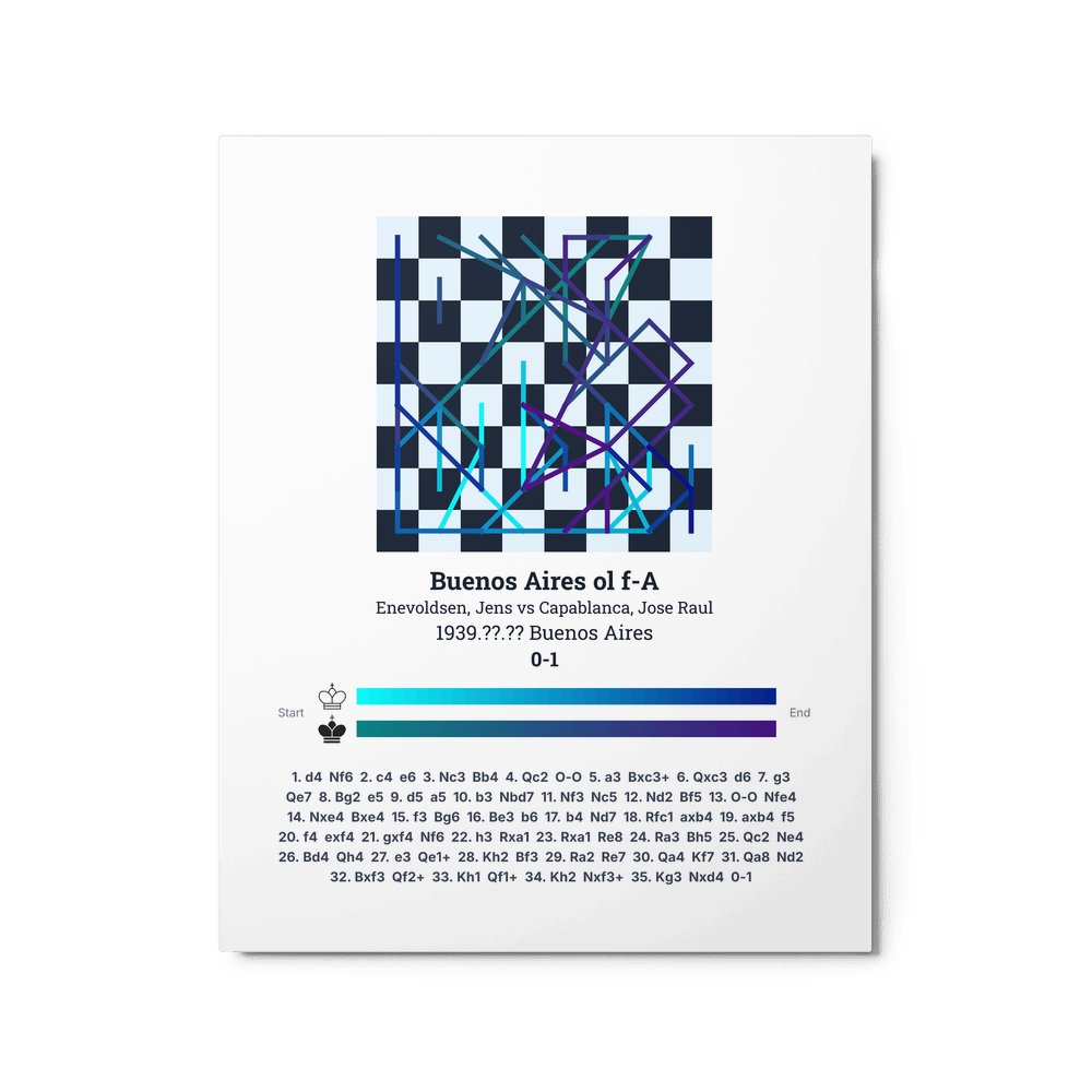 Museum-quality poster on thick, durable matte paper. A sharp, clean look for any chess visualisation.