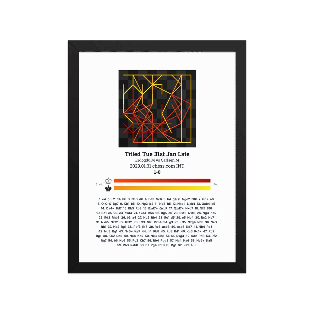 Museum-quality poster on thick, durable matte paper. A sharp, clean look for any chess visualisation.