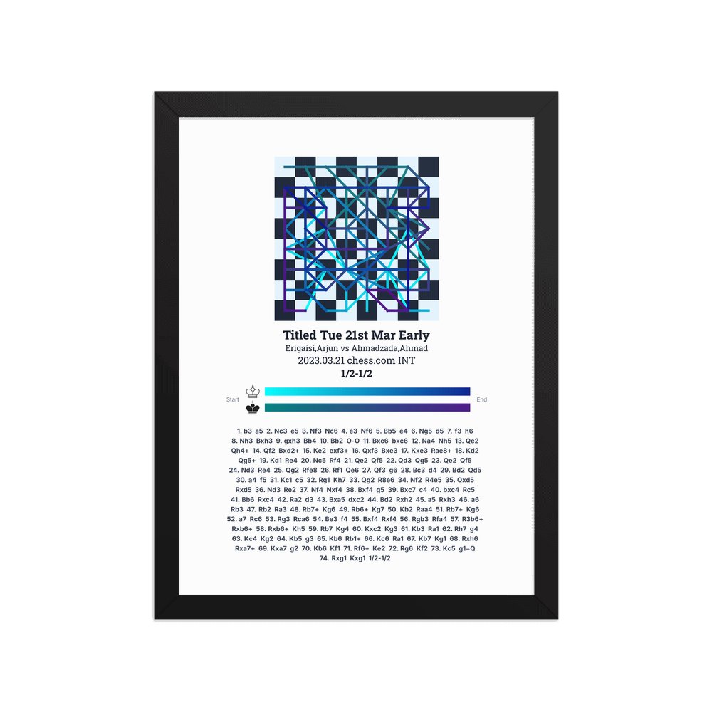 Museum-quality poster on thick, durable matte paper. A sharp, clean look for any chess visualisation.